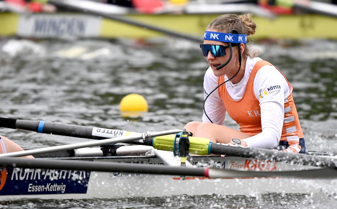 17 Grad Celsius, Sonnenschein und glattes Wasser boten beste Ruderbedingungen für das Zeitfahren. Für ein dickes Ausrufezeichen sorgten bei den Frauen die Ligarückkehrer KÖTTER Services Ruhr-Achter Essen-Kettwig: mit der besten Zeit im ersten Vorlauf und 1,4 Sekunden Vorsprung auf den Meenzer Express zeigten die Damen, dass sie auf den Punkt fit waren. Dahinter reiten sich der SachsenEnergie Achter und die Alstersprinter ein. Der Vorjahresligachampion belegte knapp vor dem Osnabrück Achter nur den fünften Rang im ersten Zeitfahren. Das E&V Team LeineMasch aus Hannover und der aus ganz Ruderdeutschland zusammengesetzte Melitta Allstar-Achter „Team Red“ verloren ihre Läufe deutlich und haben noch Luft nach oben.