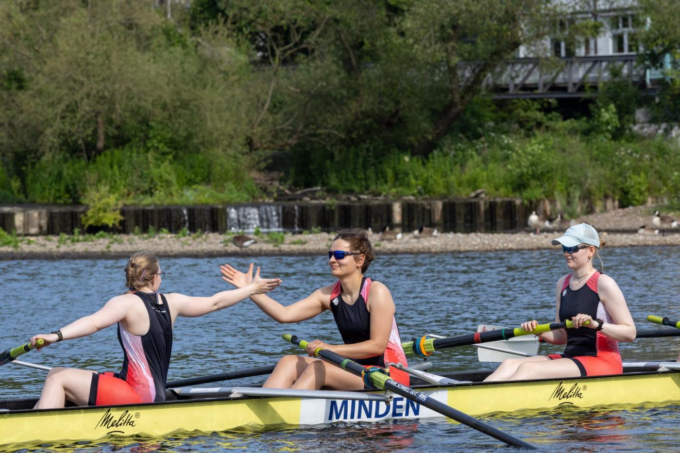 Während das Überraschungsteam aus dem Ruhrgebiet im Finale eigentlich nichts zu verlieren hatte lastet auf dem HavelQueen-Achter als Ligachampion ein enormer Druck. Aber die Damen aus der Hauptstadt zeigten, dass mit ihnen immer zu rechnen ist. Bis zur Streckenhälfte noch gleichauf zündeten die Damen um Schlagfrau Mandy Reppner den Schiefke-Turbo (nach Trainer Thomas Schiefke) und holten sich den Sieg beim ersten Renntag auf der Lahn.