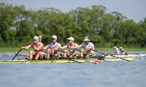 Eine lösbare Aufgabe bescherte die Auslosung dem Männer-Doppelvierer mit Tom Gränitz, Felix Heinrich, Ole Hohensee und Oliver Holtz (Berliner RC, RK Normannia Braunschweig, Stralsunder RC und Rostocker RC). Irland, Kroatien und Polen sind die Gegner im nur mit vier Booten besetzten dritten Vorlauf. Jeweils die beiden Vorlaufsieger und sechs Zeitschnellste kommen ins Halbfinale am Dienstag. Nur drei der 15 Boote bleiben auf der Strecke.
