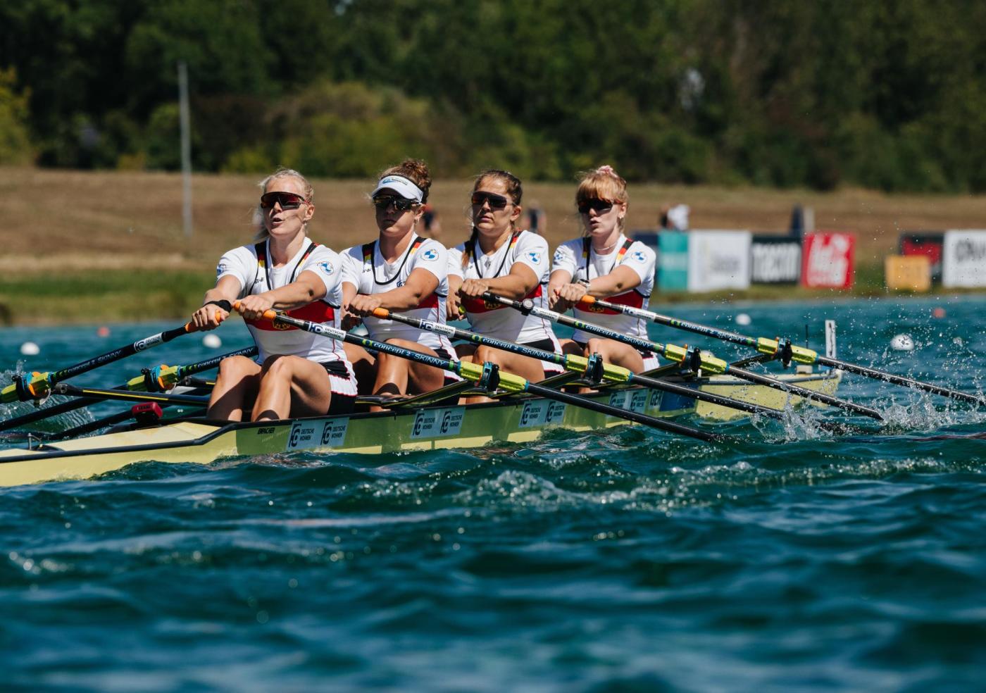 Für den deutschen Männer-Vierer war die Vorlauf-Hürde hoch, wie für einige andere Boote auch. Nur der Sieger zog direkt ins A-Finale ein. „Wir sind nicht gut ins Rennen reingekommen. Danach fehlte etwas der Biss, weil wir wussten, dass nur der Erste ins Finale kommt und vorne mit Großbritannien eine sehr starke Mannschaft war“, sagte Malte Großmann (RC Favorite Hammonia). So kam für ihn und Theis Hagemeister (Münchner RC), Max John (Olympischer RC Rostock) und Marc Kammann (Der Hamburger und Germania RC) nur Rang vier heraus. Für den Hoffnungslauf versprach Marc Kammann aber: „Wir wollen ins A-Finale und werden morgen den Schalter umlegen.“ Anders war die Ausgangssituation beim Frauen-Vierer. „Wir fahren erst seit gut einer Woche zusammen und sind ohne große Erwartungen ins Rennen gegangen“, sagte Paula Hartmann nach dem fünften Platz im Vorlauf. Im Hoffnungslauf gibt es für Christin Stöhner (SV Energie Berlin), Paula Rossen (RC Allemannia), Hartmann (Mainzer RV) und Hanna Winter (Lübecker RG) immerhin noch die Chance, das Finale zu erreichen.
