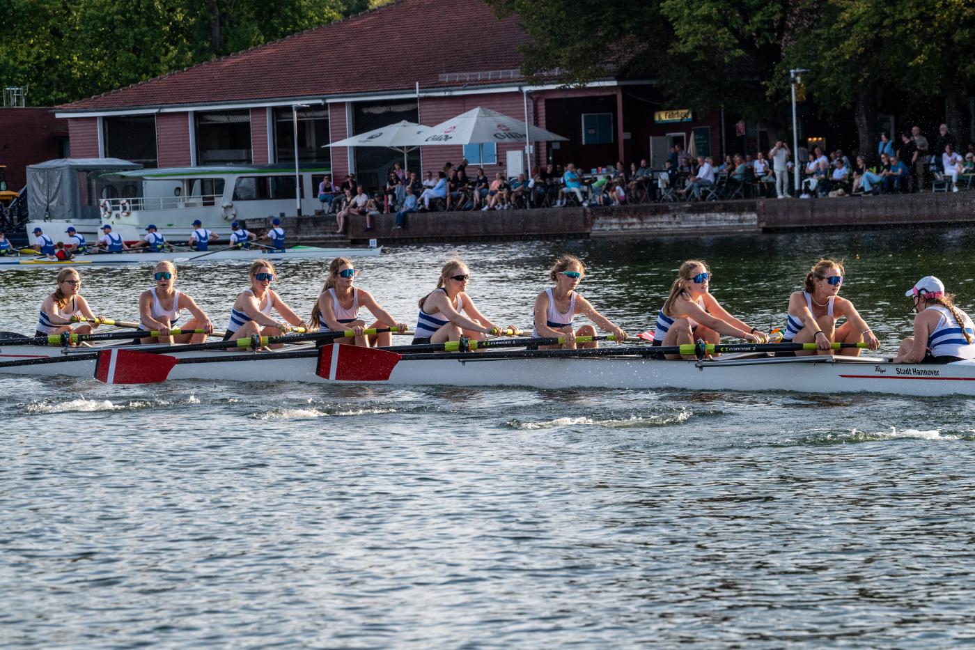 Auch vier Junioren-Achter und drei Juniorinnen-Teams hatten für diesen Renntag gemeldet. Sie stammten - wie in der Junior-Liga häufig der Fall - aus Vereinen, in denen auch Achter in den „großen“ Ligen gemeldet sind und vertraten Hannover, Magdeburg und Minden. Im Gegensatz zur regulären Bundesliga können Junioren- und Juniorinnen-Teams nur an den Renntagen im Spätsommer melden, müssen sich nicht für alle Renntage verpflichten, und fahren weniger Rennen pro Tag. Dem Hannoveraner Publikum wurde auch in diesen Rennen mächtige Unterhaltung geliefert, denn in beiden Bereichen qualifizierten sich die je zwei Achter aus Hannover für das „große“ Finale. Im Juniorinnen-Bereich unterlagen dort die Masch-Seepferdchen den Masch-Seeanemonen, während im Junioren-Finale das Team Masch-Seegurken seinen Bug vor der Masch-Seekuh über die Ziellinie schob.