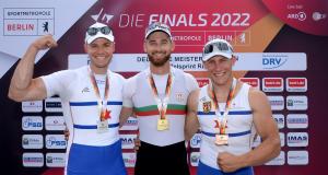 Die Entscheidung im Frauen-Zweier ohne war deutlich. Mit fast zwei Längen Vorsprung dominierten Lena Sarassa und Hannah Reif (Crefelder RC/RK am Wannsee) das Finale und freuten sich über Gold. Silber ging an Charlotte Körner und Hannah Winter (Bonner RG/Lübecker RG v. 1885). Bronze holten sich in einem engen Rennen Marie-Catherine Arnold und Lena Osterkamp (Hannoverscher Ruder-Club von 1880 e.V./DRC v. 1884 e.V.). „Wir freuen uns einfach, dass wir hier mitmachen konnten. Das ist ein sehr cooles Event und auch mal was anderes. Jetzt hier im Zweier zu gewinnen, ist für uns schon was Besonderes“, freut sich Sarassa und Reif ergänzt. „Mit den Bedingungen sind wir besser als erwartet zurechtgekommen.“
