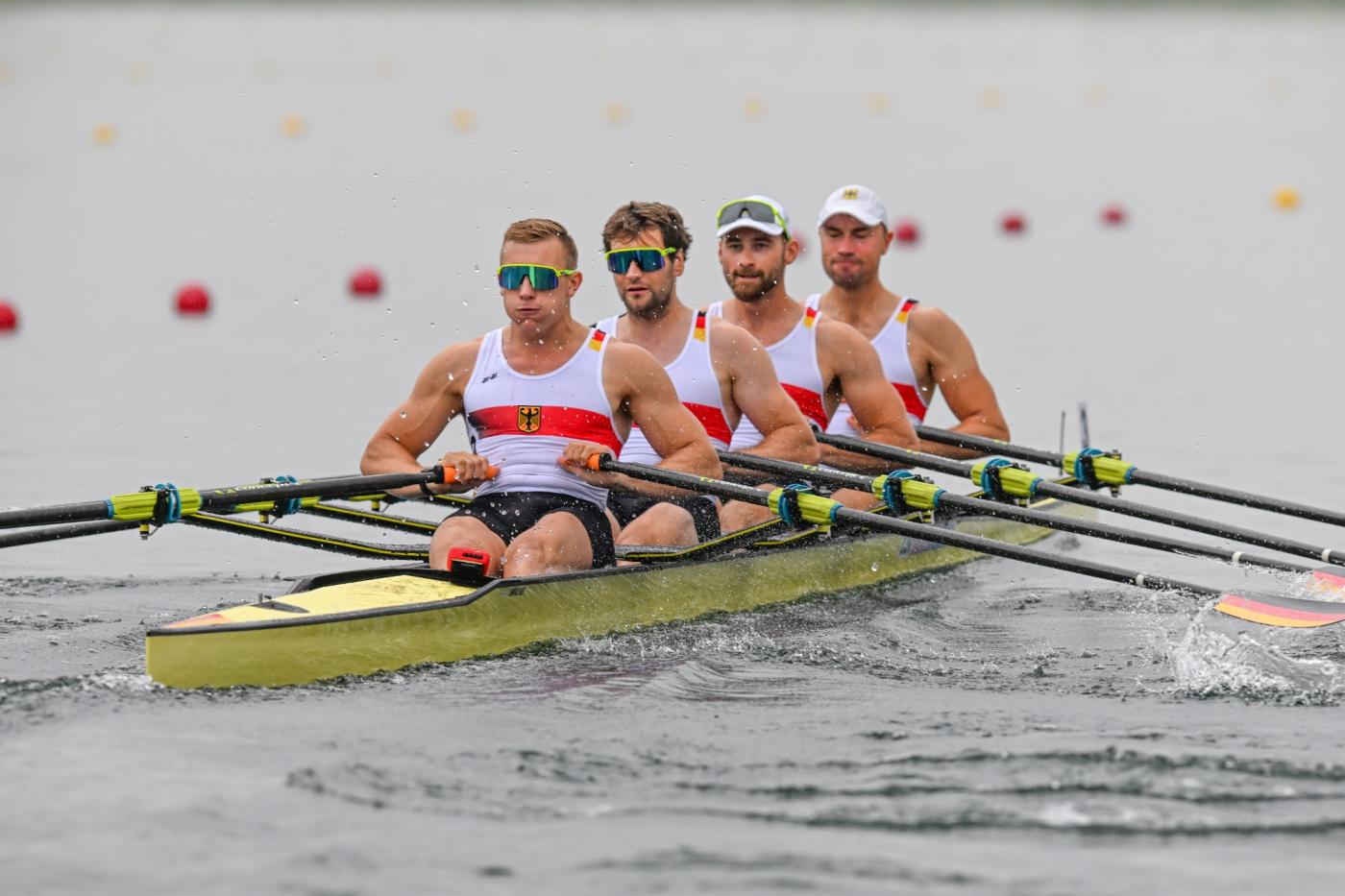 Ein beherztes Rennen zeigte der Männer-Doppelvierer, doch zum direkten Einzug in das A-Finale reichte es trotzdem nicht. Großbritannien konterte die Attacken von Anton Finger, Max Appel, Tim Ole Naske und Moritz Wolff und behauptete den zweiten Rang hinter dem souveränen Vorlaufsieger Niederlande. Als Drittplatzierter muss das deutsche Boot nun in den Hoffnungslauf am Montag (11.20 Uhr). Gegner sind dort Rumänien, die Schweiz, Norwegen und Estland. Platz eins oder zwei bringen die Chance zum Kampf um die Medaillen.
