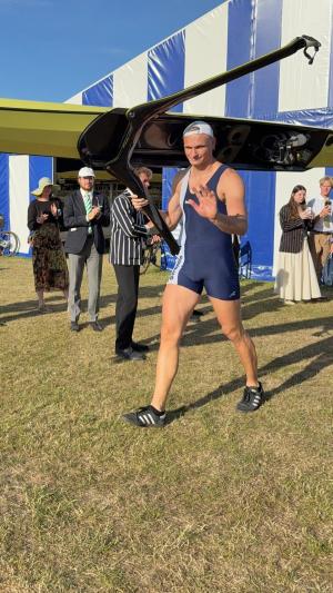 Besonders im Fokus: Oliver Zeidler, Olympiasieger und amtierender Weltmeister im Einer. Sein zweiter Start in der traditionsreichen Diamond Challenge Sculls endete heute mit einem souveränen Einzug ins Halbfinale. Erst Mitte der Woche aus Singapur angereist und in dieser Saison noch ohne Rennpraxis, zeigte Zeidler bereits am Vortag seine Klasse. Heute trat er gegen den Briten A.J. Thompson an, der international für Großbritannien im Skiff startet. Zeidler diktierte das Rennen von Beginn an, lag bereits an der „Barrier“ klar in Führung und setzte sich am Ende komfortabel durch. Morgen geht es gegen den starken Neuseeländer F.J. Hamill, der heute überraschend Simon van Dorp schlug.