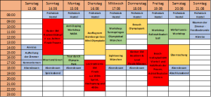 Kurz: Wir gestalten eine Woche voller sportlicher Action, die keiner der Teilnehmenden vergessen wird. Das komplette Programm seht ihr in folgender Grafik: