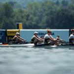 An seine Leistung gestrigen Hoffnungslauf wollten Anton Finger, Max Appel, Tim-Ole Naske und Moritz Wolff (Berliner RC/SC Magdeburg/RG Hansa Hamburg/Berliner RC) im Männer-Doppelvierer anknüpfen. Neben Australien liegend hatten sie insbesondere noch die Schweiz im Blick, die sie in Bled im B-Finale noch geschlagen hatten. Aus der Startanlage ruderten alle Teams mit mehr als 40 Schlägen pro Minute, aber das Rennen entwickelte sich dann doch zu einer zwei-Klassen-Gesellschaft. An der Spitze ruderten Italien, Polen und Großbritannien. Europameister Polen ging zur Streckenhälfte in Führung und verteidigte diese vor den anstürmenden Hausherren. Das DRV-Quartett und die Schweiz kämpften um den vierten Platz, den die südlichen Nachbarn bis zur Ziellinie verteidigen konnten.