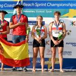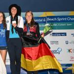 Der deutsche Medaillensatz bei der Coastal-EM in San Sebastian, Spanien, ist komplett. Nach Silber (CCW4x+) und Bronze (CCW1x) über die Langstrecke gestern gewann Monika Bundschu heute Gold beim Beach Sprint im CU19W1x. Die zweite Bronzemedaille für das deutsche Team holte der CMix2x.