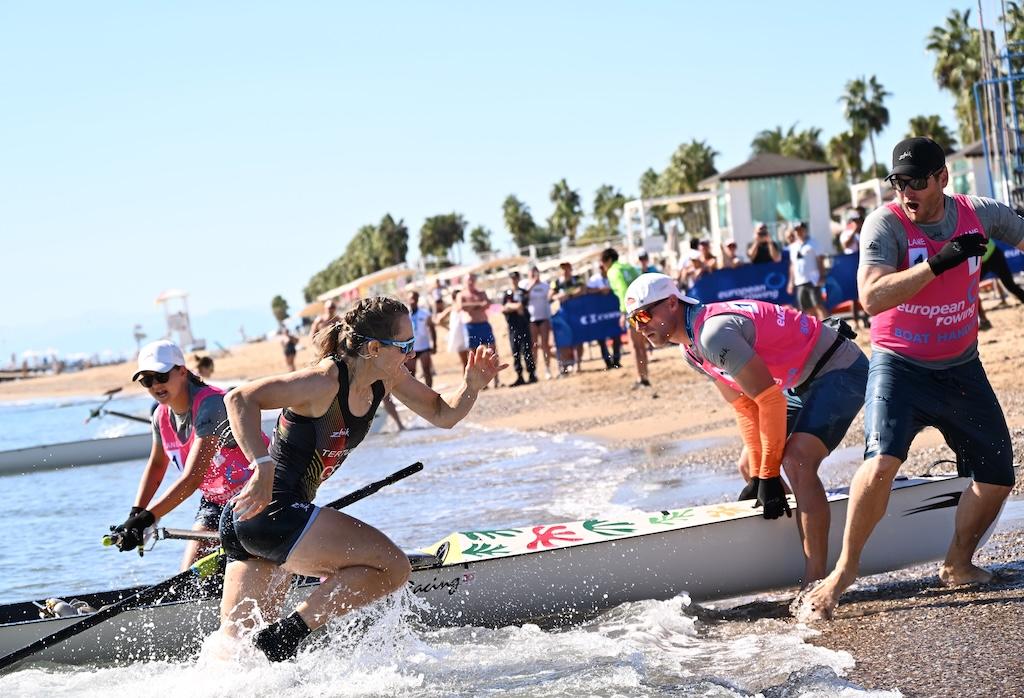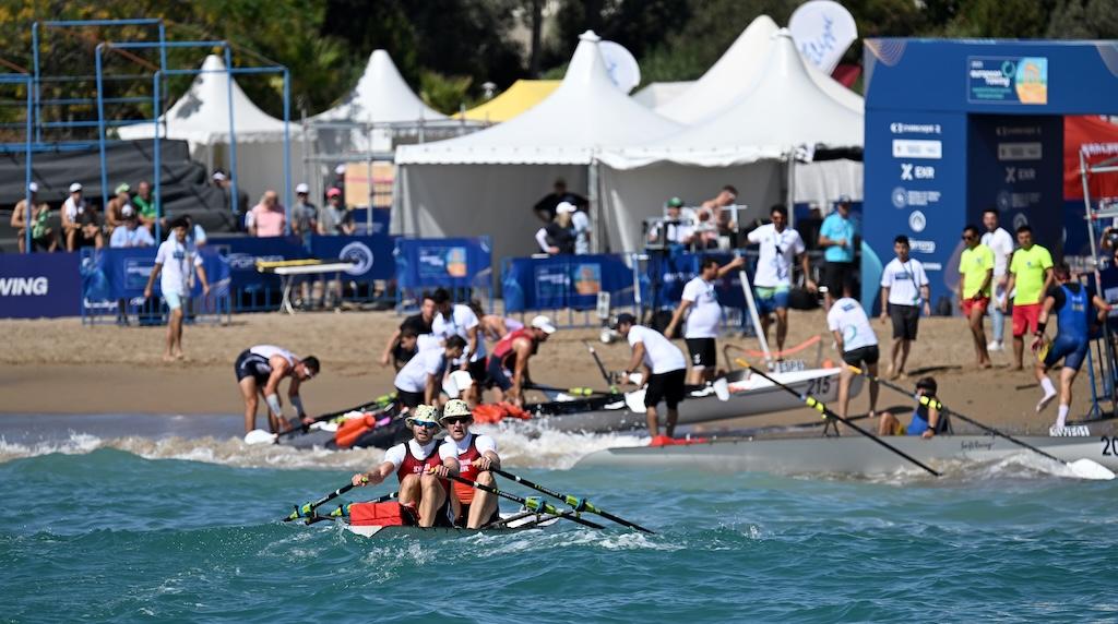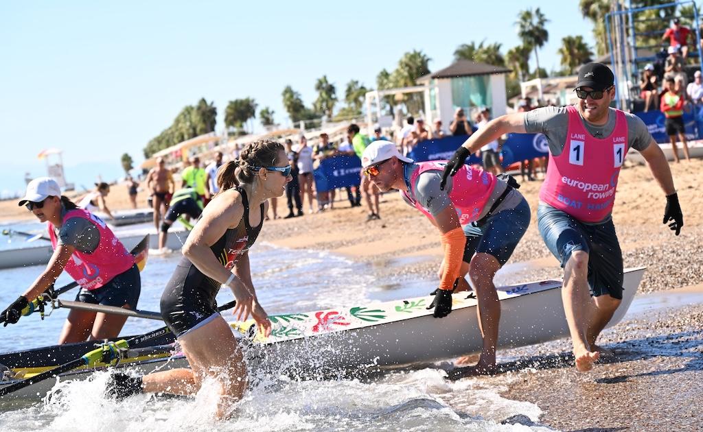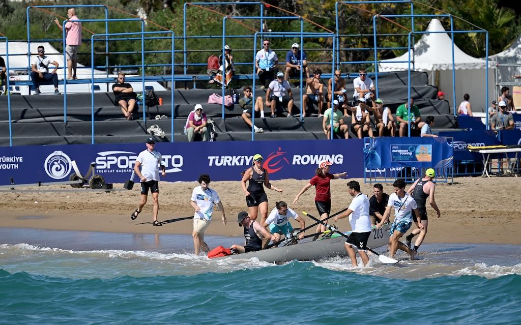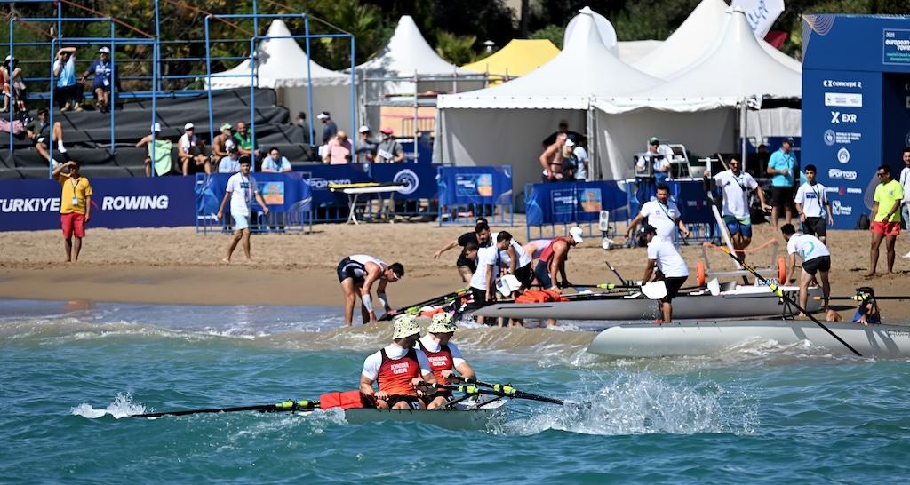 Das erste Rennen des Tages bei den European Rowing Coastal Championships 2025 war das Finale im Mixed Coastal Mixed Double Sculls (MCMix2x) – und eröffnete den Finaltag an der türkischen Riviera mit einem hochklassigen Starterfeld.