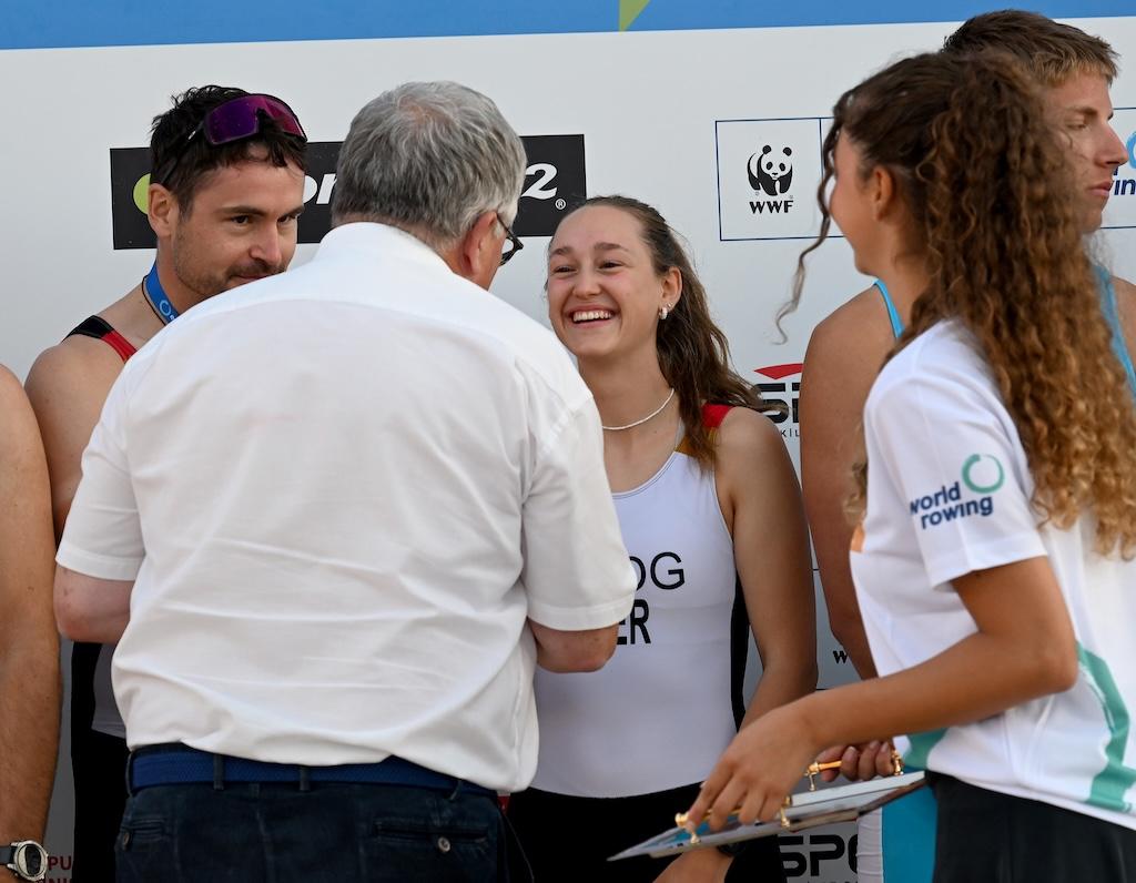 Dahinter folgte der Bremerhavener RV in der Besetzung Franziska Kösling, Sarah-Ann Kronemann, Tessa Kuhn, Johanna-Luise Kanwisch mit Steuermann Jacob Michalski (RG München) auf Rang acht im 18-Boote-Feld.