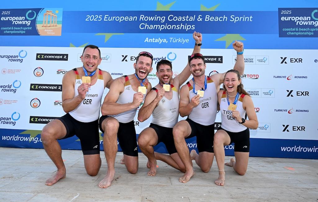 Mit dem Gewinn der Goldmedaille durch den deutschen Männer-Vierer und zwei vierten Plätzen im Frauen-Doppelvierer und im Frauen-Doppelzweier endeten für das deutsche Team erfolgreiche und intensive Wettkampftage bei den European Rowing Club Coastal Championships 2025 im türkischen Antalya. Die deutschen Athletinnen und Athleten präsentierten sich auf der anspruchsvollen 6-km-Küstenstrecke in allen Bootsklassen kämpferisch, technisch stark und geschlossen als Mannschaft.