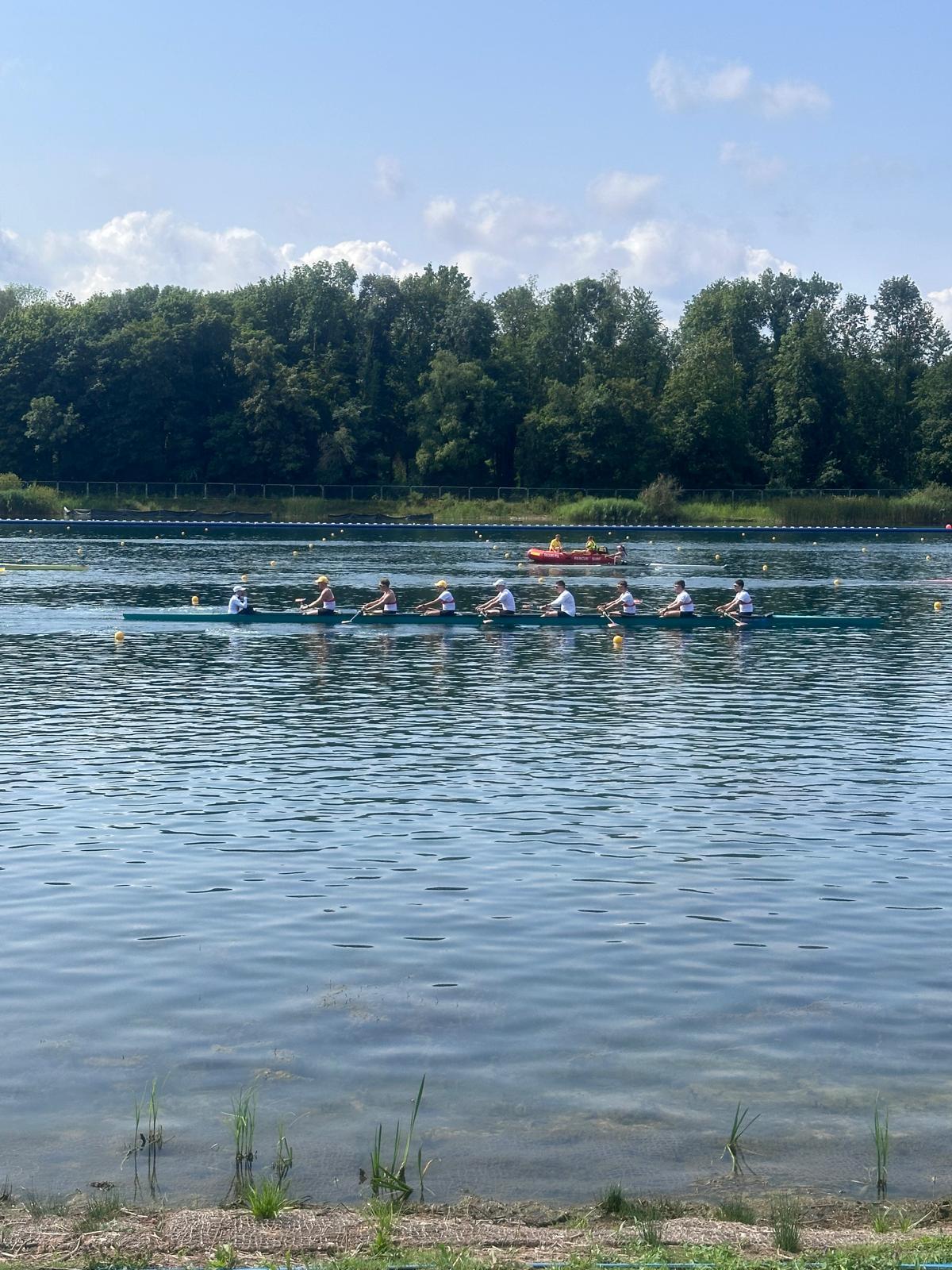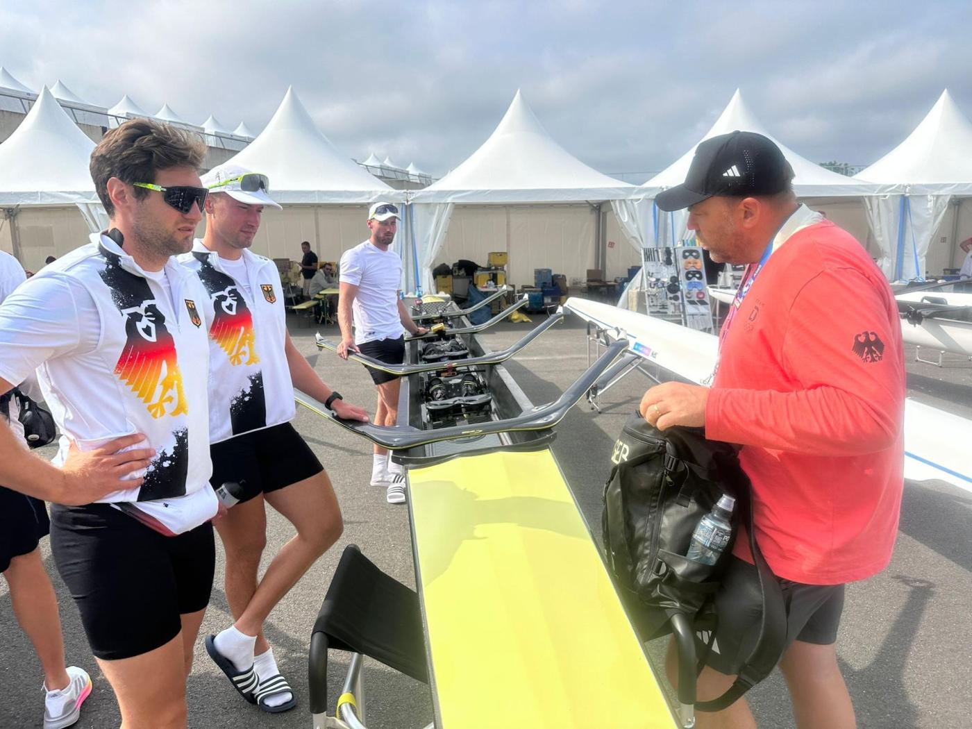 Einen Tag früher angereist zu sein als ursprünglich geplant, hat sich für die deutsche Ruder-Nationalmannschaft ausgezahlt. Als die sieben DRV-Boote am Dienstag erstmals aufs Wasser gingen und die olympische Regattastrecke in Vaires-sur-Marne beschnupperten, gab es noch reichlich Platz und Ruhe. Am Mittwoch war es beim Training dann schon deutlich voller. Der gefürchtete Seitenwind, der hier häufig bläst, machte freundlicherweise an beiden Tagen Pause.