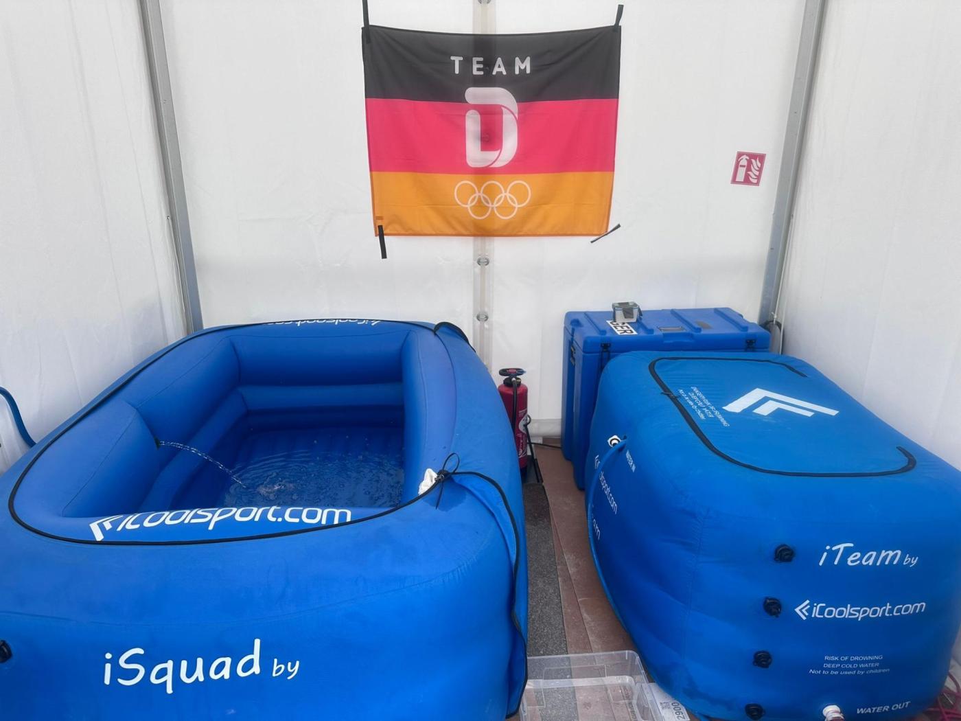 Im Wassersportstadion hat sich seit der Generalprobe vor einem Jahr bei der U19-Weltmeisterschaft viel zum Positiven getan. Die deutsche Mannschaft hat drei Zelte zur Verfügung, eines davon mit zwei Kühlbecken und eines für Material. Das große Zelt teilt man sich mit der deutschen Kanu-Slalom-Nationalmannschaft, die ihre Wettkämpfe ebenfalls in der ersten olympischen Woche auf dem benachbarten Wildwasserkanal durchführt. Daneben stehen dem Ruder-Nationalteam auch noch zwei Räume in einem festen Gebäude zur Verfügung.