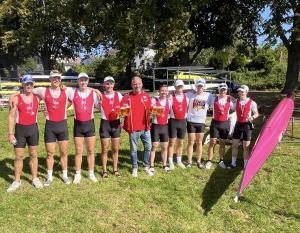 Der Wille war groß, nachdem es im vergangenen Jahr nicht mit dem erhofften Erfolg geklappt hatte. Immerhin saß in dem Boot das beste, was der Hanauer Rudersport derzeit im Männer-Bereich zu bieten hat: Gewinner von U23- bzw. U19-WM-Medaillen wie Simon Gimplinger, Julius Klein, Ole Hanack, Julian Bothe, Jakob Rastetter und Steuermann Leonard Rieth, aber auch Hassia-Coach Robby Gerhardt, der mit dem deutschen Leichtgewichts-Achter 2010 Weltmeister wurde. Dazu machten die starken Hassianer Tim Moormann und Bjarne Beyel das Siegerteam komplett.