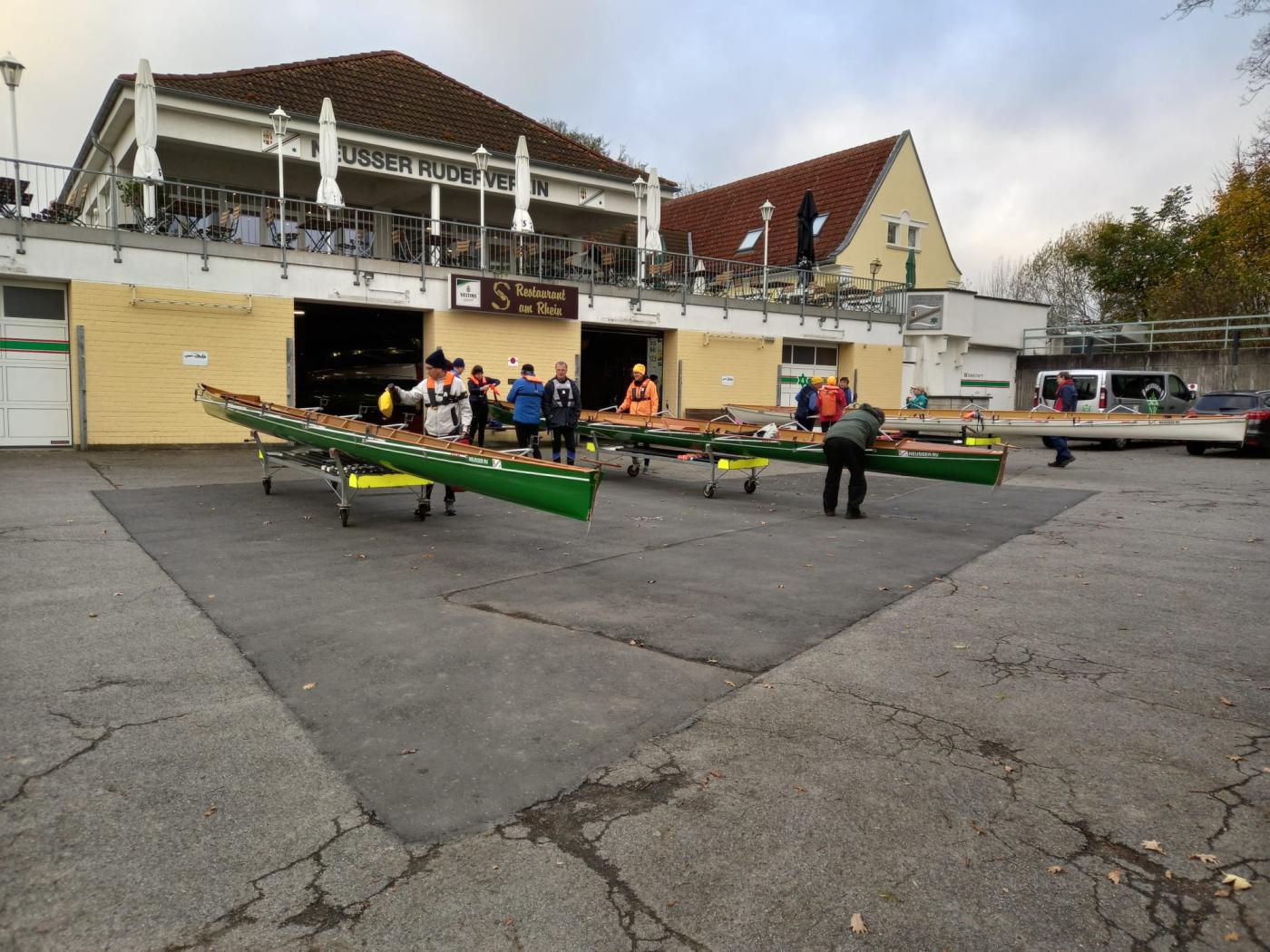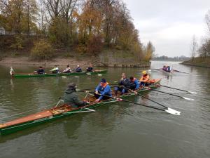 Ausklingen ließ das Ressort die jährliche Sitzung mit dem traditionellen gemeinsamen Rudern am Sonntagmorgen - hier wird also nicht nur geredet, sondern auch fleißig gerudert! Bei eiskaltem Wetter wurden mit Unterstützung einheimischer Ruderer und Ruderinnen in drei Gig-Fünfern die letzten acht Kilometer der Tagesfahrt beim geplanten Wanderrudertreffen 2023 in Neuss auf- und abwärts erkundet.