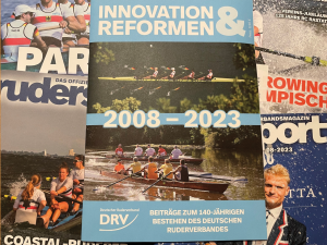 In der Sitzung wurde eine Reihe weiterer Themen bearbeitet. So nimmt das digitale Ruder-Archiv, das eine online-Recherche ermöglichen wird, konkretere Formen an. Ein Großteil der vorhandenen Zeitschriften, Protokolle, Verbandsunterlagen und Festschriften ist nunmehr auch digitalisiert. Im ersten Schritt ist im kommenden Jahr die Bereitstellung von Zeitschriften und Vereinsfestschriften für die interessierte Öffentlichkeit vorgesehen. Hierzu liegt die Zustimmung der betroffenen Verlage vor. Über eine Nutzungsordnung, die derzeit angestimmt wird, soll der Zugang auch rechtlich abgesichert werden. Eine Reihe positiver Rückmeldungen hat es zum Sonderheft „Innovation & Reformen“ zum 140-jährigen Bestehen des DRV gegeben. Dieses war der April-Ausgabe des „rudersport“ beigefügt und ist zusätzlich den Vereinen kostenfrei zugesandt worden. Weitere Exemplare können in der Geschäftsstelle angefordert werden.