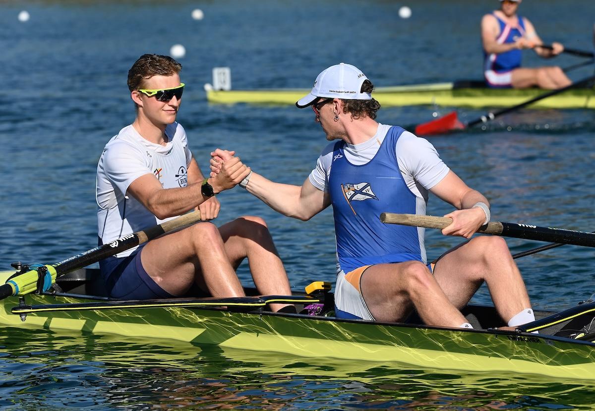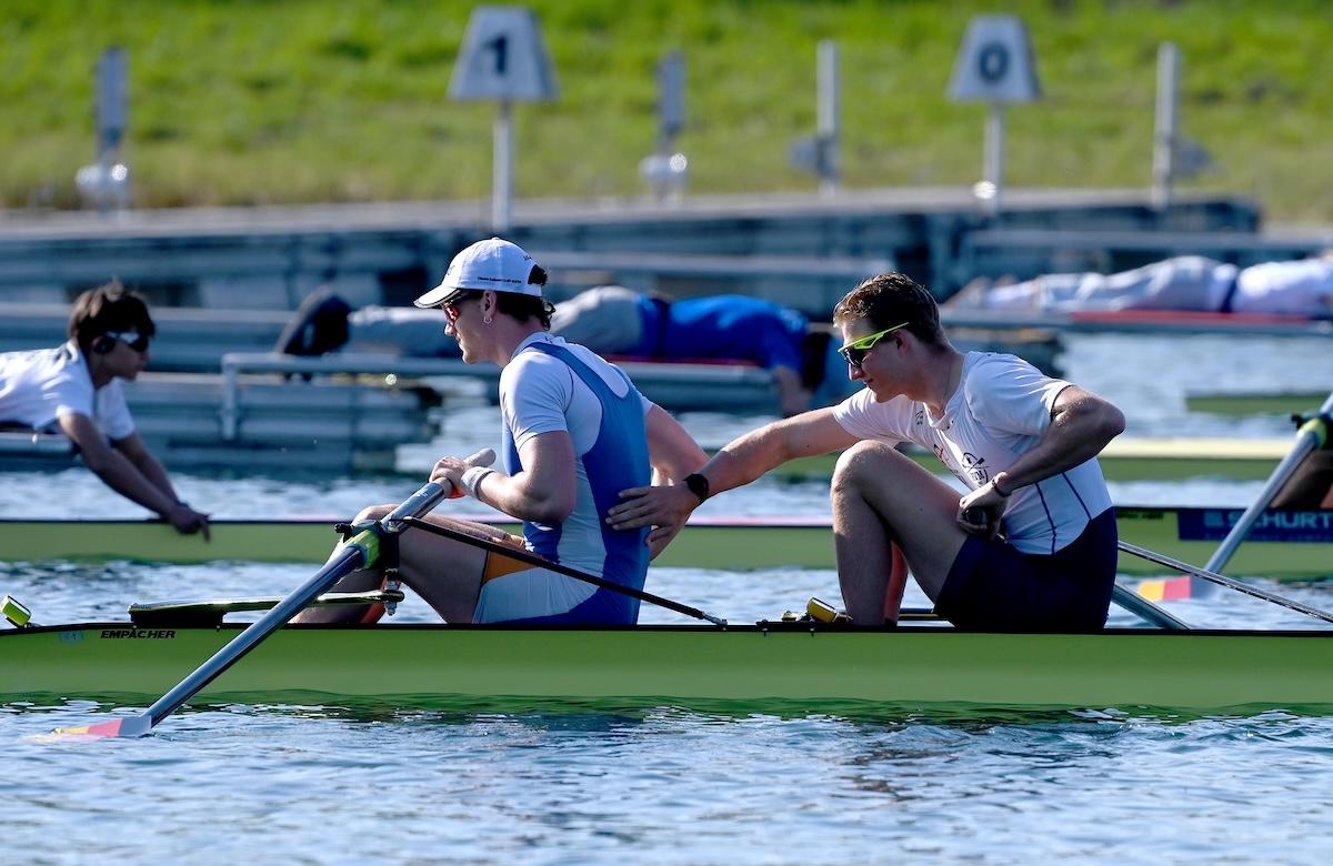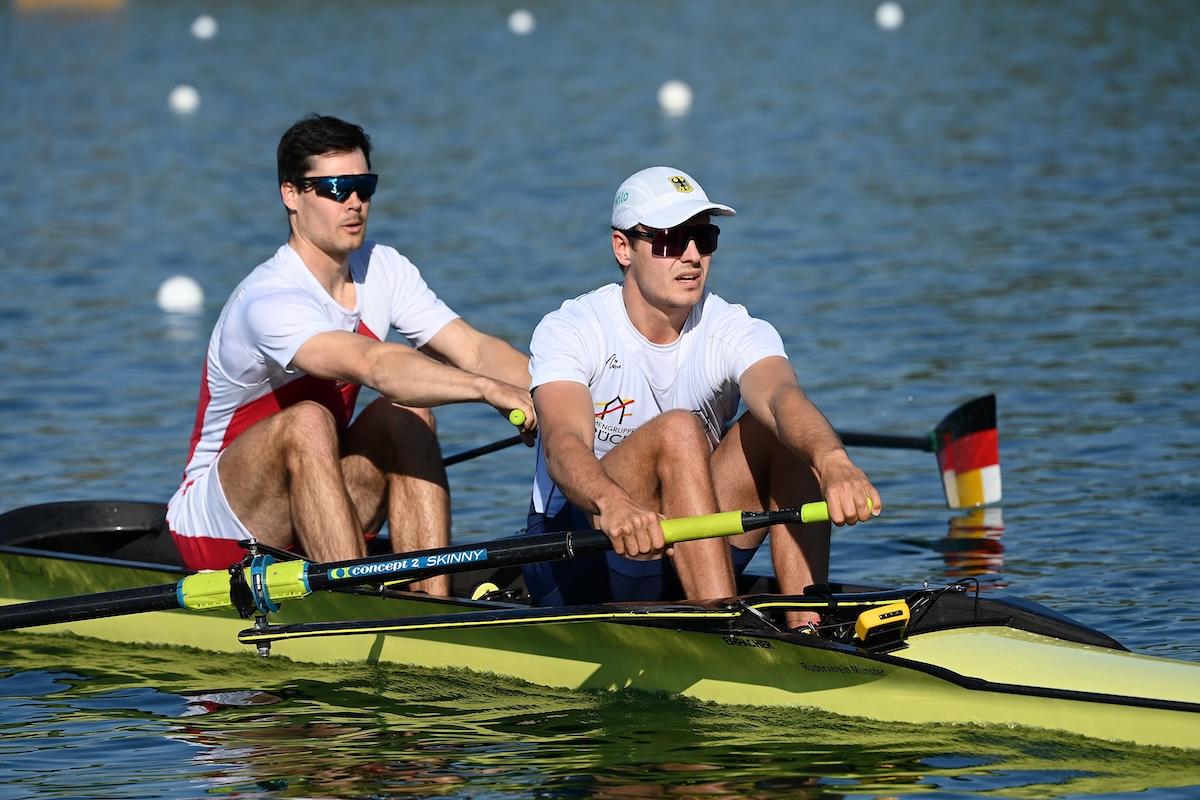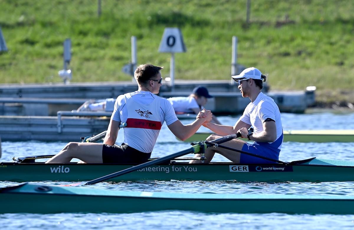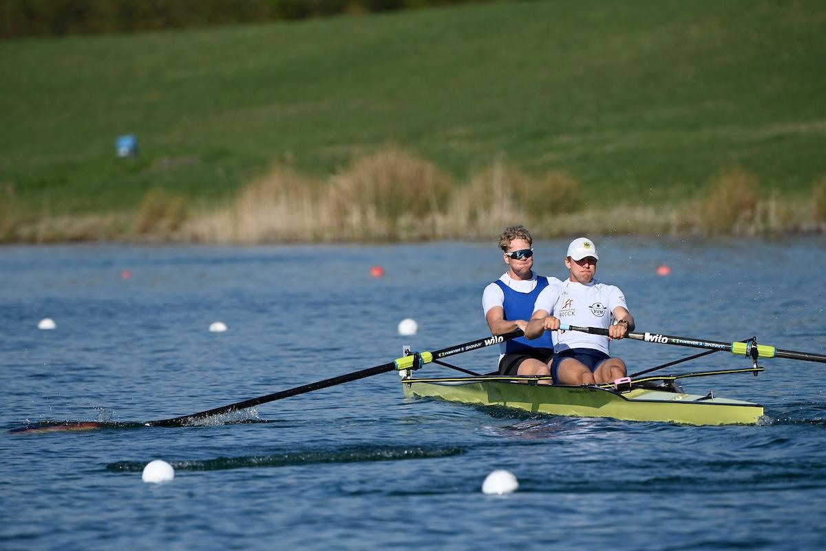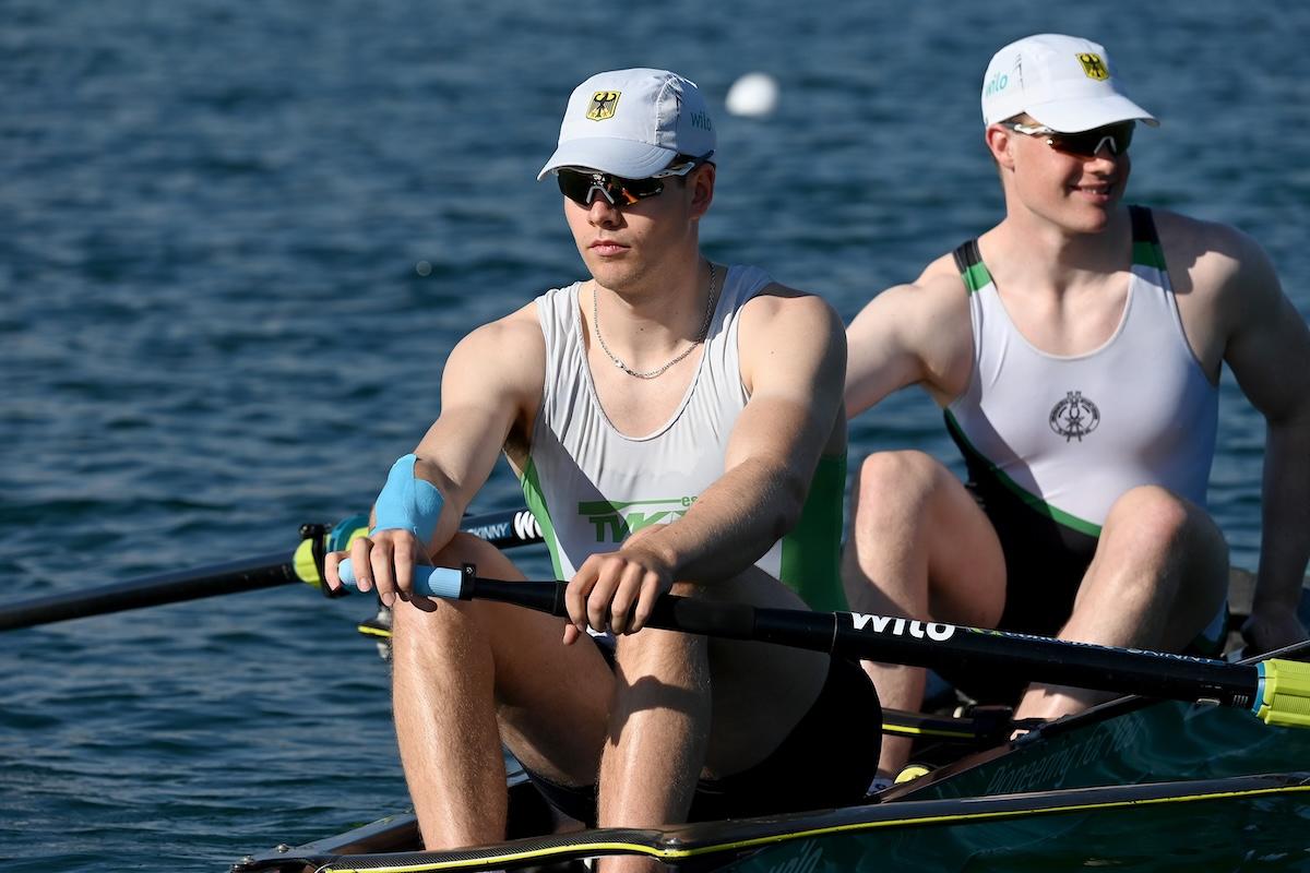 Im Männer-Zweier waren die Titel-Favoriten Paul Klapperich und Theis Hagemeister (Bonner RG/Frankfurter RG Germania) bei ihrem Vorlauf-Sieg auch die Gesamt-Schnellsten. Auf Rang drei kamen in ihrem Vorlauf Mark Hinrichs und Sönke Kruse (Limburger ClfW/RV Münster), die nach dem krankheitsbedingten Ausfall ihrer vorgesehenen Partner Julius Christ und Hanno Brach ein neues Boot bilden.