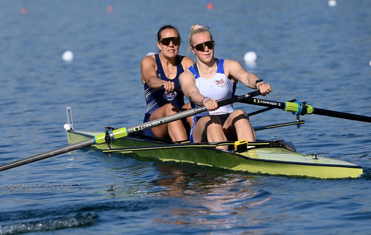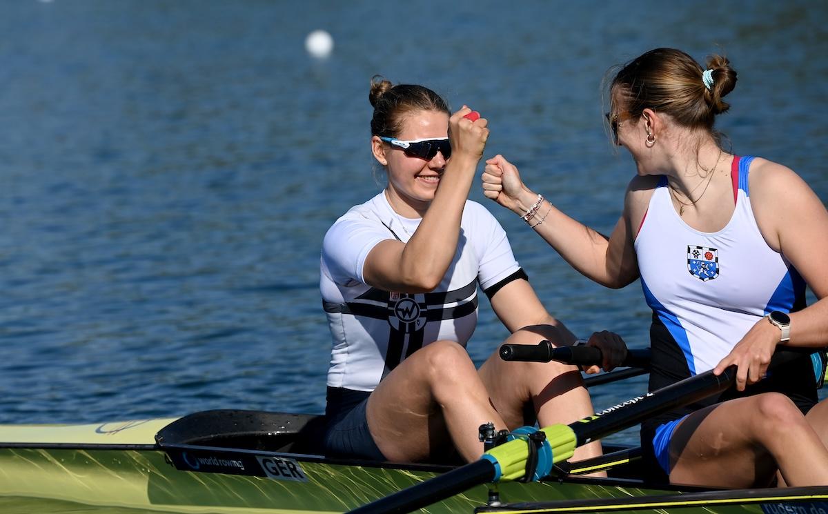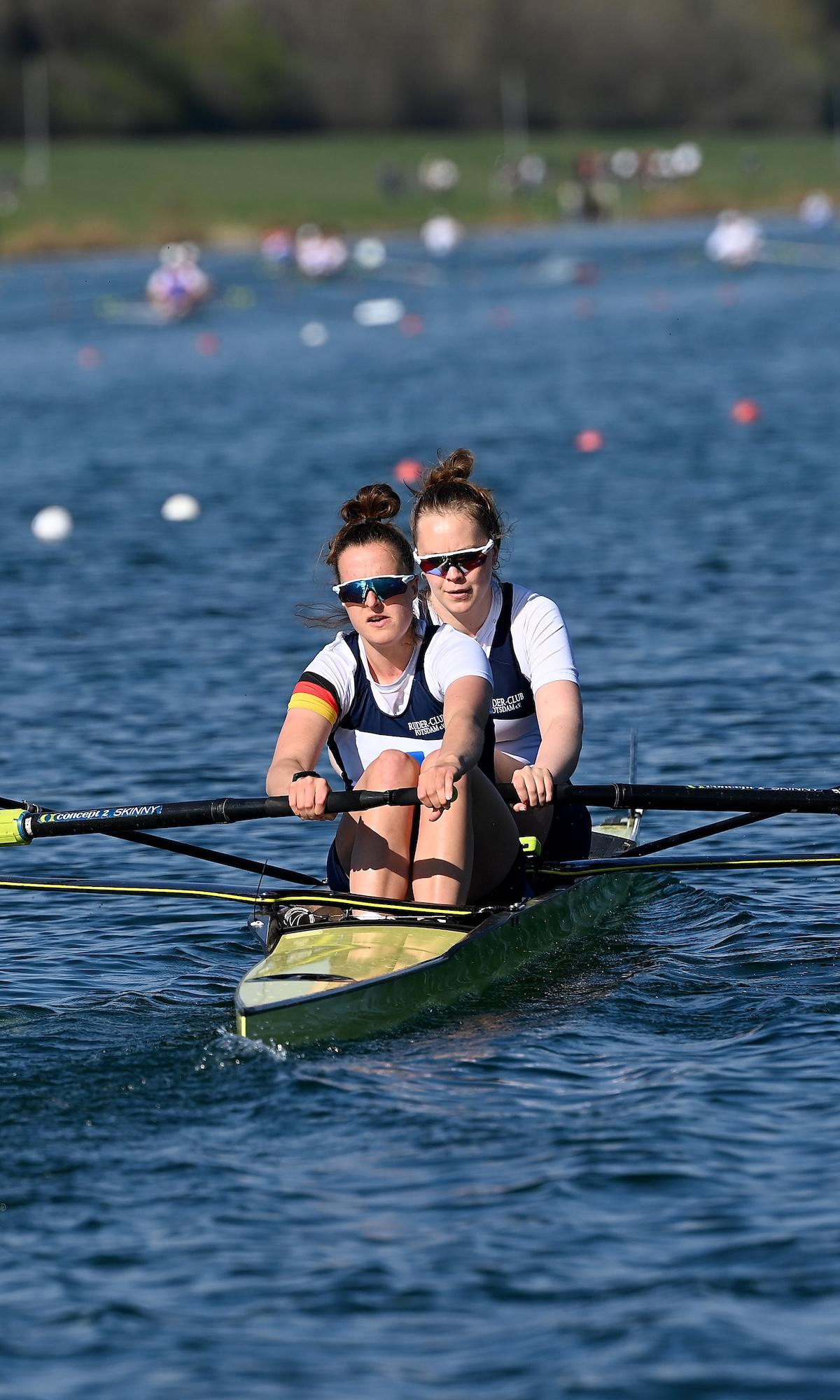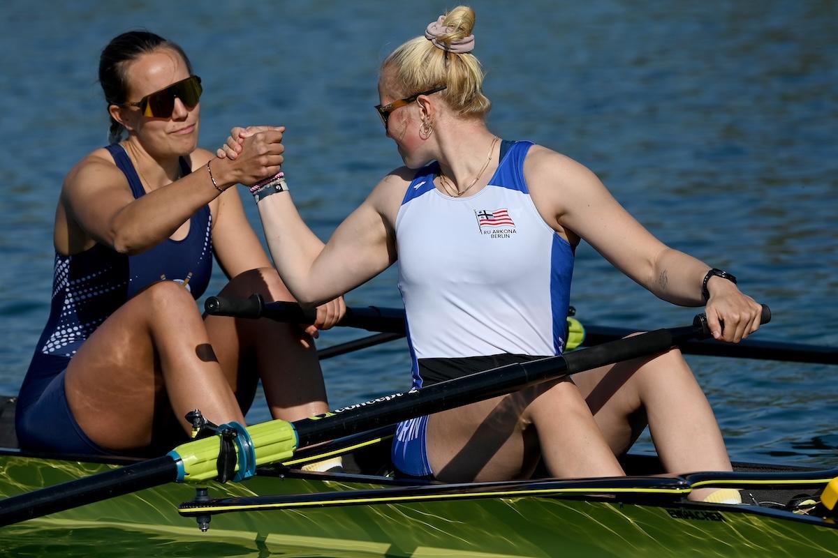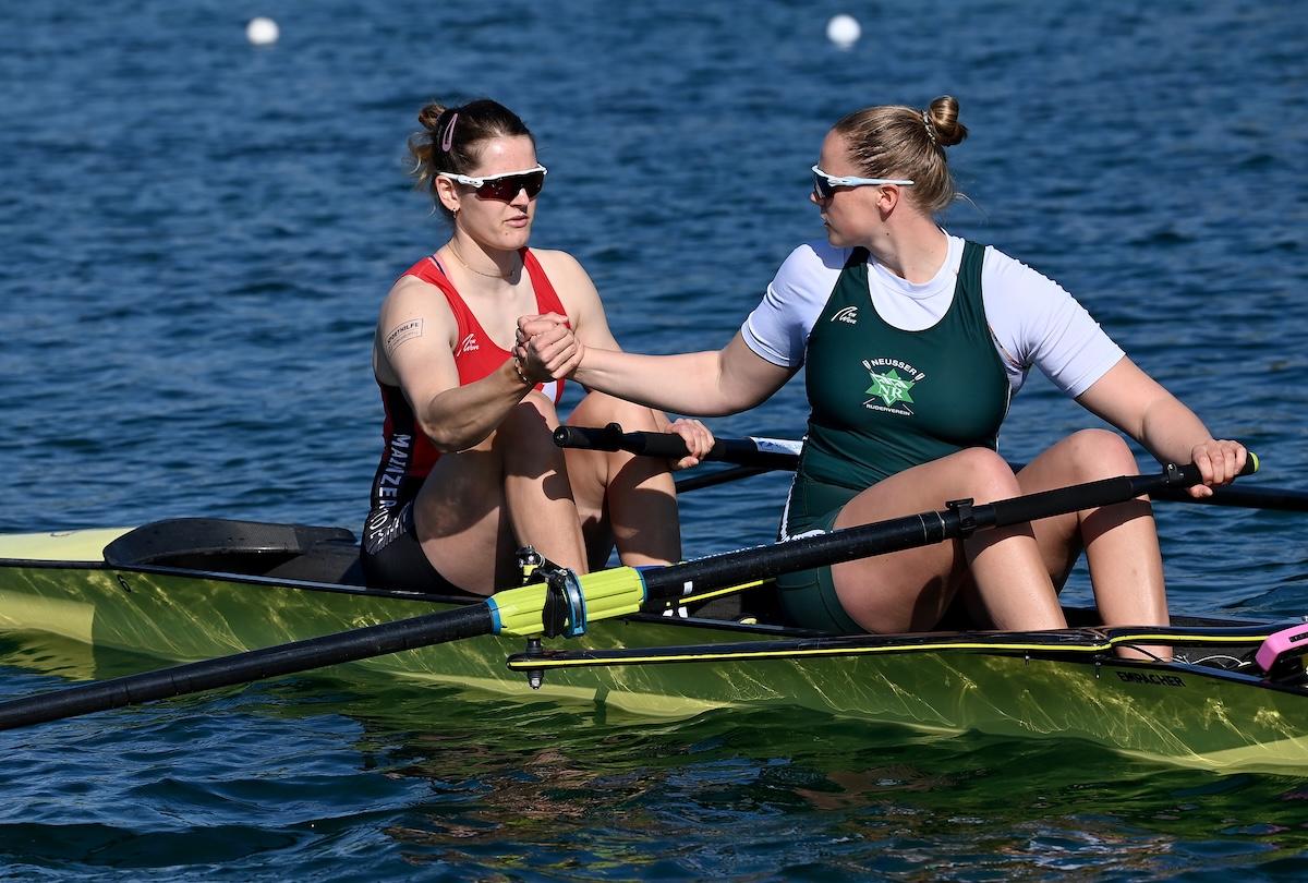 Zwei U23-Sportlerinnen sorgten für die größte Überraschung bei den Vorläufen zur deutschen Kleinboot-Meisterschaft am Freitag in München: Lene Holkenbrink und Raphaela Werner (RC Allemannia/Mainzer RV) ließen bei ihrem Sieg im Frauen-Zweier ohne die Favoritinnen Paula Hartmann und Olivia Clotten (Mainzer RV/Neusser RV) hinter sich. Da in dieser Bootsklasse nur die Laufsieger direkt ins Halbfinale einzogen, müssen Hartmann/Clotten am Samstag im Hoffnungslauf antreten.