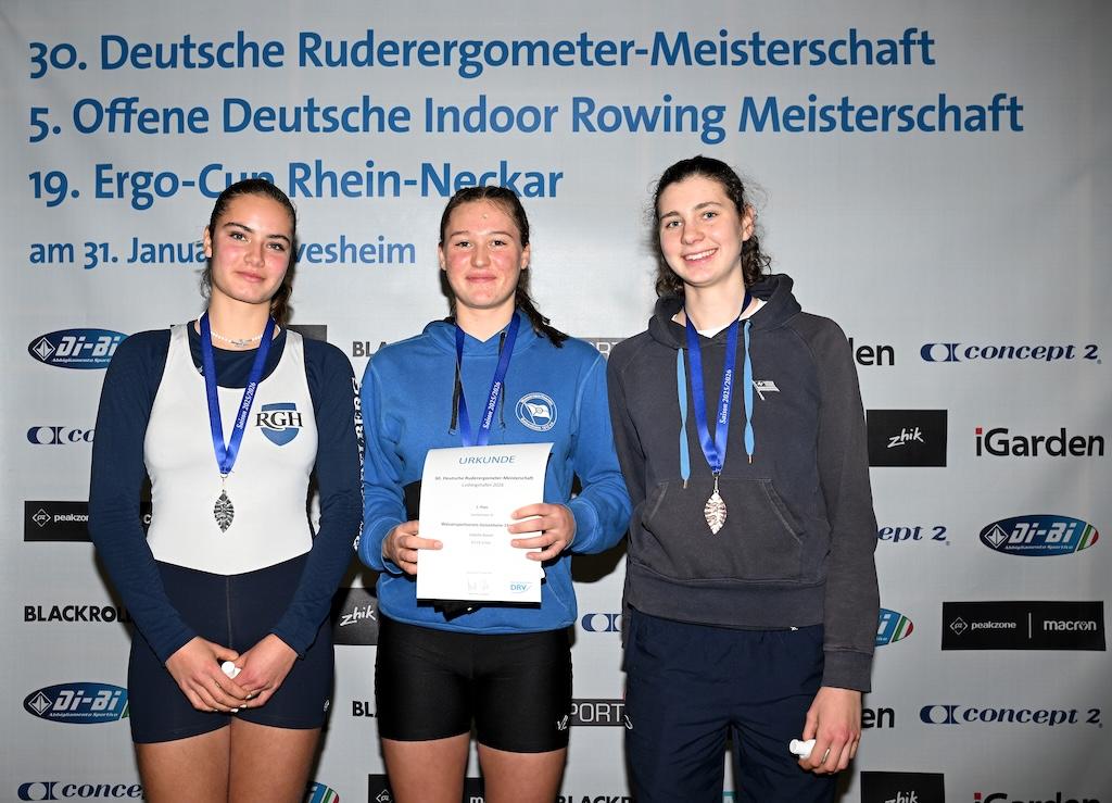 Im Frauen-Einer A sicherte sich Katja Beerscht (Gießener RC Hassia) den Deutschen Meistertitel in starken 6:52,50 Minuten. Mit dieser Zeit bestätigte sie eindrucksvoll ihre außergewöhnliche Physis – ein Weltklassewert auf dem Ergometer. Silber ging an Lisa Nagler (Mannheimer RV Amicitia von 1876), Bronze an Franka Müller (Wasser-Sport-Verein Düsseldorf Rudergesellschaft von 1893 e.V.).