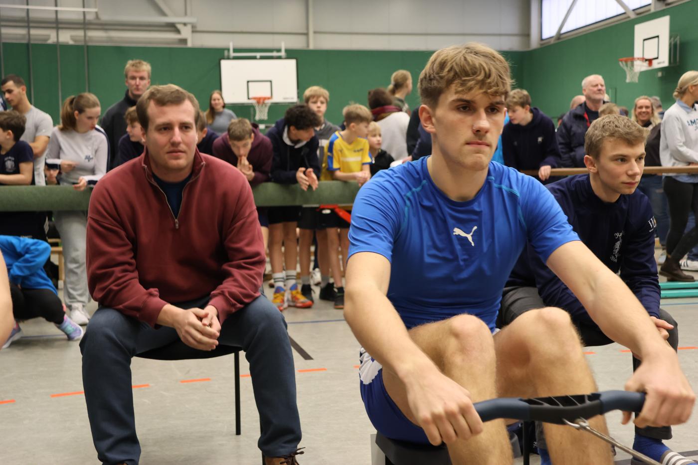 Auch höhere Altersklassen sind vertreten: Selbst Landestrainer und SRG-Ruderer Thomas Schulz (Senioren A) nimmt auf dem Ergometer Platz und wird auf einer Strecke von 2.000 Metern Vize-Landesmeister. Das Anfeuern übernimmt Stützpunkttrainer René Flaschmann – von Trainer zu Trainer sozusagen. Masters-Ruderin Simone Baalhorn (Klasse F) erreicht in ihrem 1.000-Meter-Rennen einen ersten Platz, angefeuert von Masters-Coach Manfred Stecker.