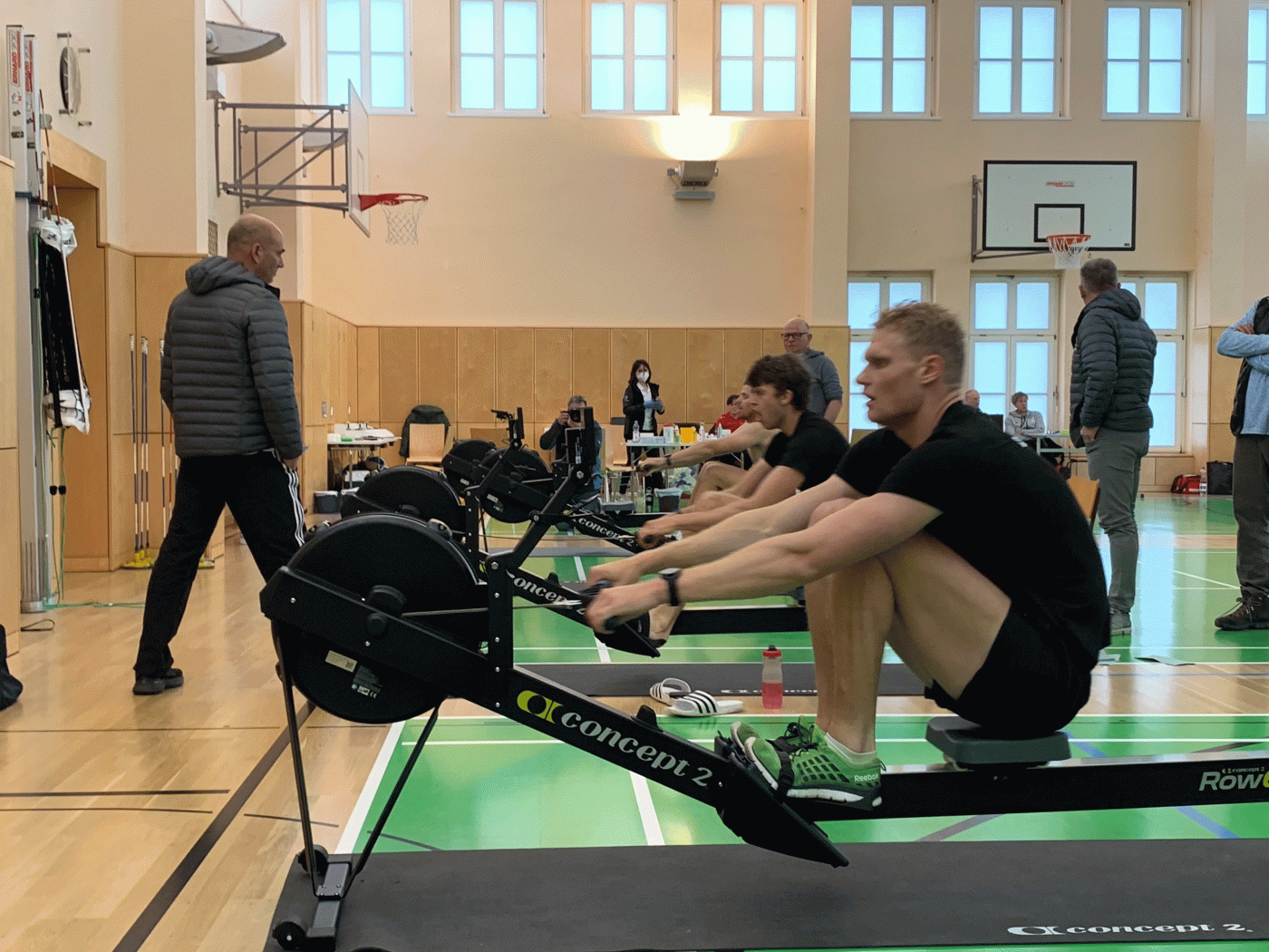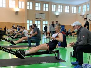 Während des Ergometertests ist es für alle um das Knacken der vorgegebenen Norm gegangen. Für die Männer liegt dieser Wert bei einer Zeit von 06:00 Minuten auf die 2000 Meter. Im Männer Riemen Bereich haben das neun Sportler geschafft; allen voran Mattes Schönherr und Olaf Roggensack. Wobei auch Sportler, die die Norm nicht gerissen haben, wie zum Beispiel Marc Kammann und Wolf-Niclas Schröder, große, von der Bundestrainerin Brigitte Bielig registrierte Verbesserungssprünge machen konnten. „Im Männer-Riemen Bereich sieht man leicht positive Tendenzen, aber es ist jetzt noch nicht die Masse unter der Norm geblieben. Wir müssen aber auch akzeptieren, dass wir keine Riesenschritte auf einmal machen können! Ich bin positiver als im letzten Jahr!“, freut sich die Bundestrainerin.