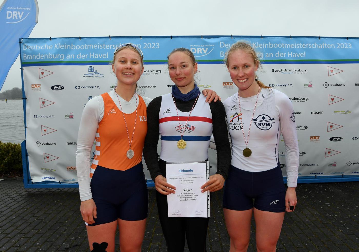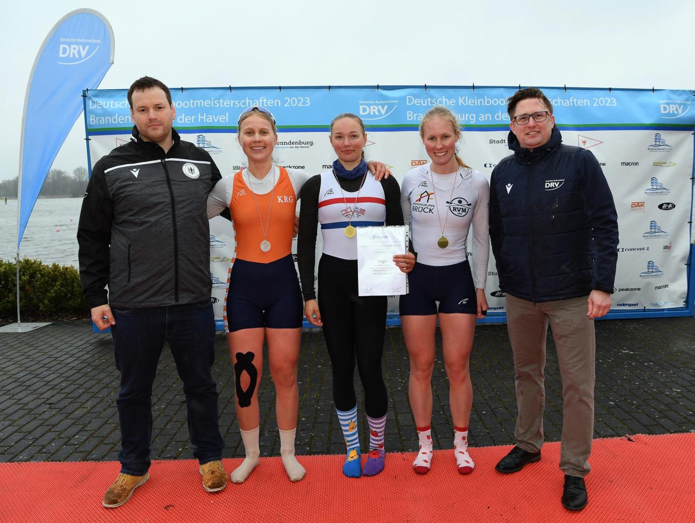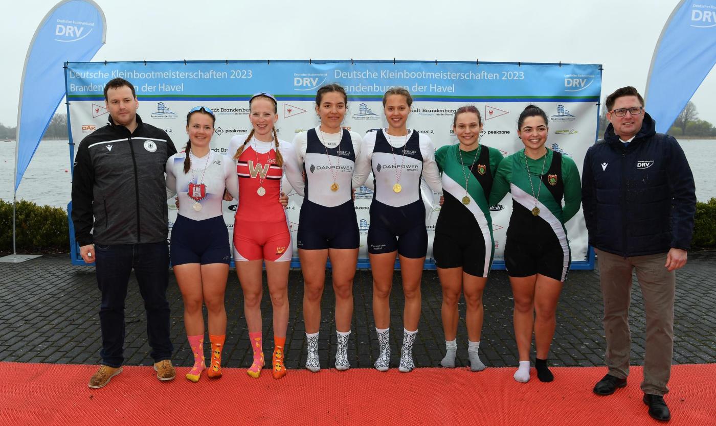 Ansonsten hat sich der Sportler:innen-Kreis, der sich bereits über die Wintermonate rauskristallisiert hat, auf die vorderen Ränge gerudert. „Im Großen und Ganzen waren schon die Boote, die wir zum leistungsstärkeren Kreis gezählt haben, vorne. Allerdings gab es in allen Bootsklassen auch ein bis zwei Mannschaften, die wir nicht unbedingt so weit vorne gesehen haben. Es freut uns natürlich, dass wir Entwicklung bei den Sportler:innen sehen.“, freut sich Bretting und resümiert im gleichen Atemzug: „Insgesamt bin ich super zufrieden mit dem Wochenende. Die Organisation der Rennen und der kompletten Veranstaltung war top. Ein großes Dankeschön an Havel-Regatta-Verein! Mit unserer Maßnahme stellen wir natürlich schon Sonderansprüche, die Mittelboote z.B. setzen wir erst wenige Stunden vor dem Rennen, sodass alle spontan reagieren müssen. Aber die Absprache hat super funktioniert, die Anlage ist sowieso top und wir konnten z.B. den Vierer auch auf acht Bahnen ausfahren. Gut - das Wetter war wie es war, aber es hat trotzdem Spaß gemacht!“