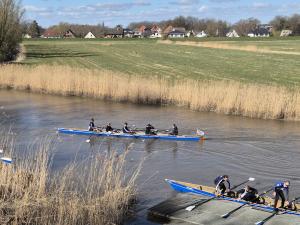 Für die jüngeren Ruderer (Steuerleute) ging es zudem in die Boote, um die gelernten Ruderbefehle und Steuermanöver in die Tat umzusetzen. Sauberes An- und Ablegen am Steg wurde dabei ebenso geübt wie das Wenden eines Bootes. Die Jugendlichen waren mit viel Eifer dabei und meisterten ihre Aufgaben mit Bravour.