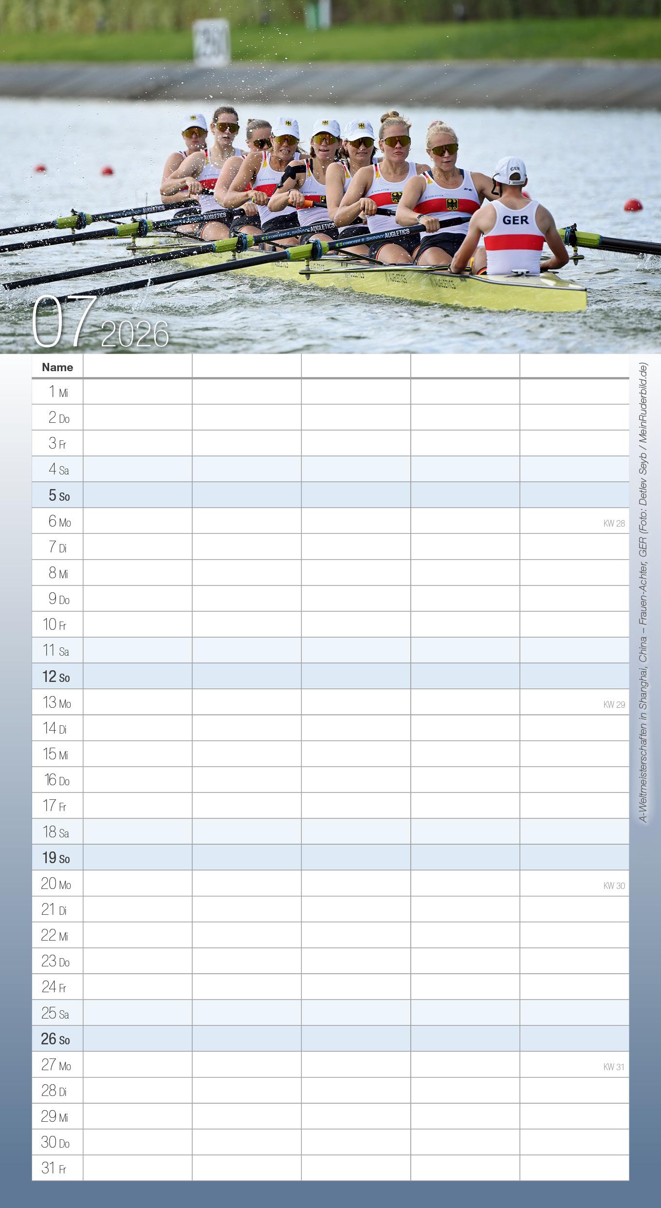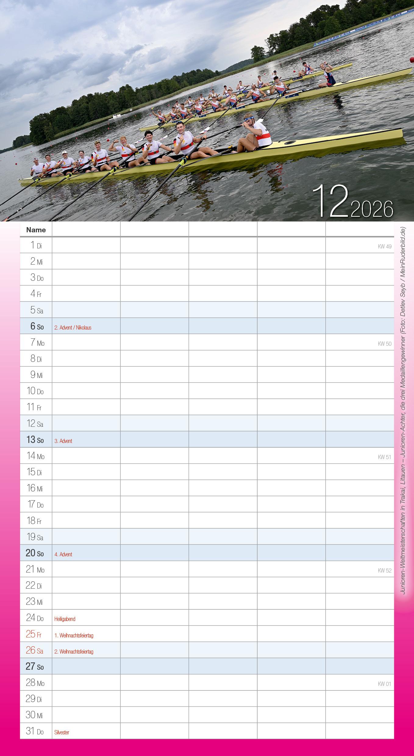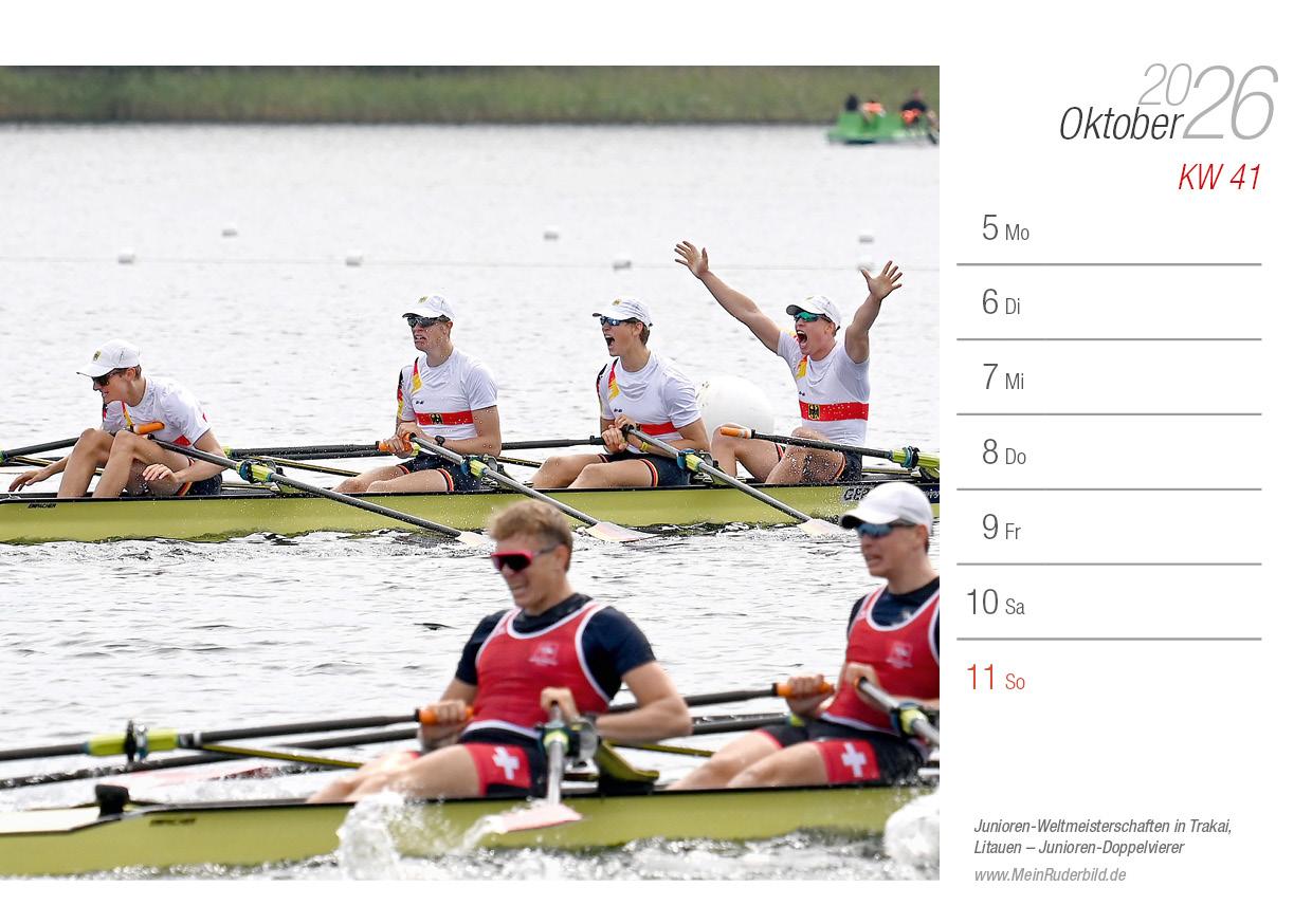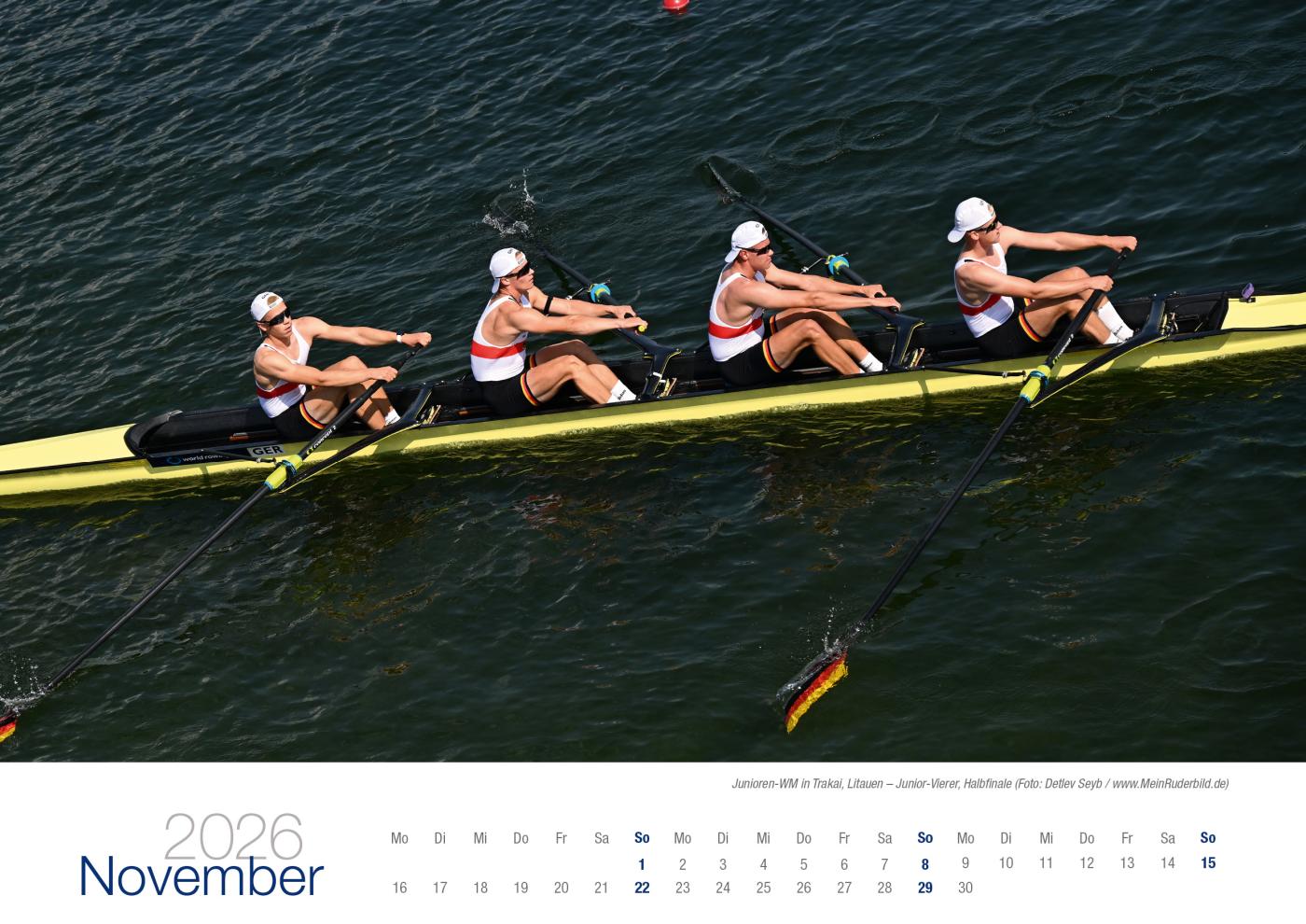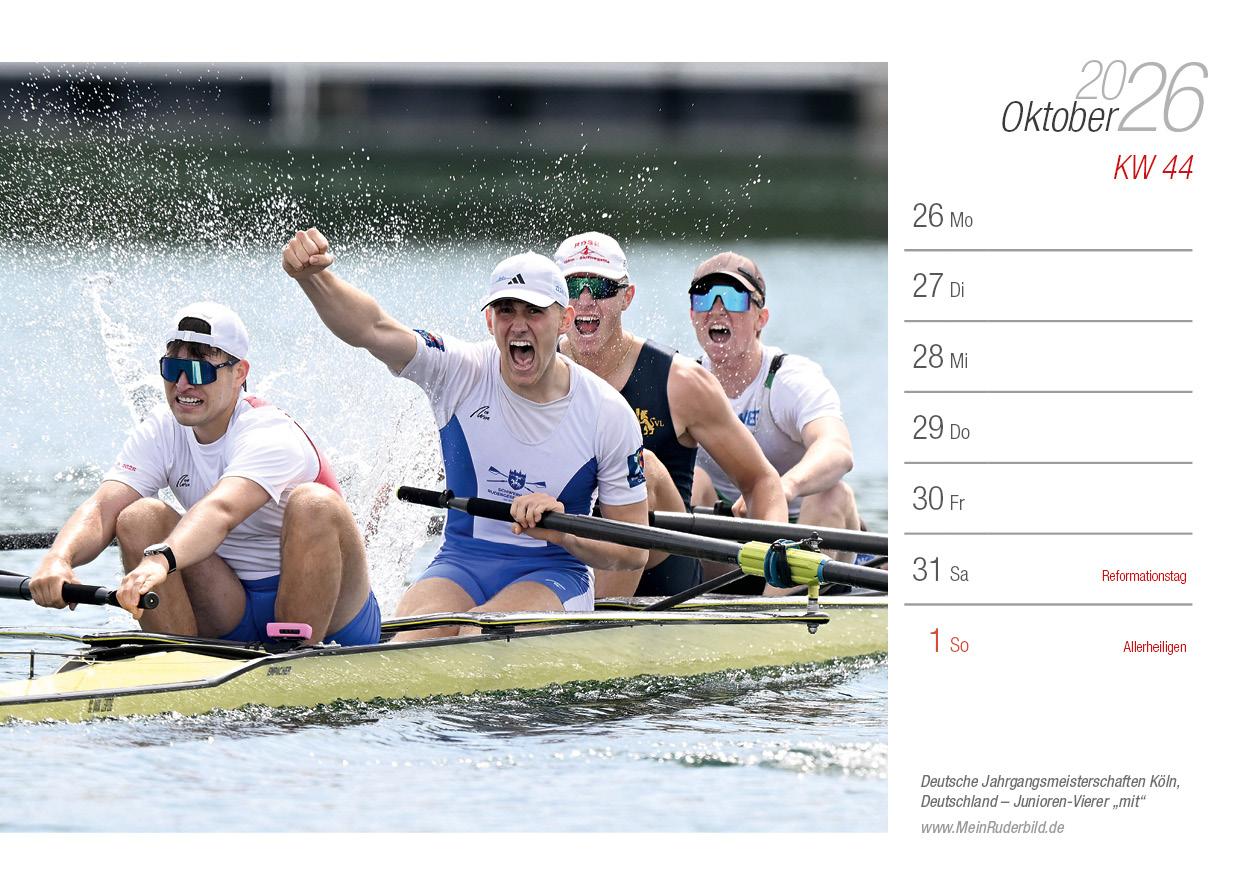 Der 2026er Ruder-Kalender von Meinruderbild.de mit 12 bunten Motiven im DINA 3-Format. Impressionen und Action von den Weltmeisterschaften in Shanghai, den Coastal- und Beach Sprint-Europameisterschaften in Antalya, den Weltcups in Luzern und Varese sowie von den Deutschen Jahrgangsmeisterschaften in Köln. 15 Euro pro Stück (zzgl. Porto/Verpackungskosten).