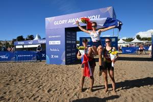 Wie Wolff kann auch Julia Tertünte (RV Münster) im Frauen-Solo am Sonntag um die Medaillen mitmischen. In einem packenden Achtelfinale setzte sie sich gegen Vivien Preil (Ungarn) durch und sicherte sich damit den Einzug ins Viertelfinale. Das Duell war bis zur Strandlinie extrem eng. Tertünte, die schon im Time Trial als Zweitschnellste hinter Olympiasiegerin Emma Twigg überzeugte, behielt die Nerven. Als ihre Gegnerin beim Ausstieg kurz ins Straucheln geriet, blieb Julia konzentriert, sprintete entschlossen ins Ziel und sicherte sich den verdienten Sieg. Nach dem Rennen kam kurzzeitig Unruhe auf. Die Livestream-Kommentatorin meinte zu sehen, dass Julia die Flagge auf dem Strand an der falschen Seite passiert hatte. Der Challenge von Ungarn wurde jedoch nicht stattgegeben. Nach erneuter Sichtung der Bilder durch die Jury wurde bestätigt: Tertünte hatte den Kurs regelkonform absolviert. Im Viertelfinale am Sonntag steht das Duell mit der Spanierin Teresa Diaz Moreno an.