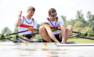 Im Männer-Zweier ohne Steuermann kamen Mark Hinrichs und Marc Kammann (Limburger ClfW und Hamburger UGRC) sehr gut vom Start weg. Nach 500 Metern lagen die beiden Riemen-Ersatzleute knapp hinter dem späteren Vorlauf-Sieger Schweiz auf Rang zwei. Bis zur 1000-Meter-Marke hatten sich dann auch Serbien und die Niederlande am DRV-Boot vorbeigeschoben. Auf Platz vier kamen Hinrichs und Kamann dann auch ins Ziel, konnten mit ihrer Leistung aber durchaus zufrieden sein. Nun geht es am Freitag im Hoffnungslauf weiter. Rang drei unter sechs Booten brächte den Einzug ins A-Finale.