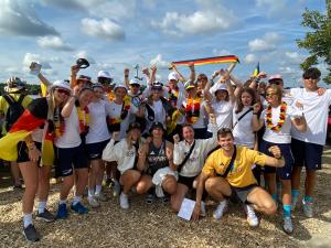 Schließlich kam der goldene Samstag! Der letzte Tag des Camps brach an und es sollte ein ganz besonderer sein. Zum ersten Mal waren wir als Gruppe zusammen bei den Rennen, die Tage davor waren es stets Kleingruppen, und somit war die Stimmung am Morgen schon einmal super. An der Strecke angekommen richteten wir uns entsprechend ein und freuten uns, dass nun auch RUDI mit dabei war, der die Zuschauer:innen kräftig einheizte.