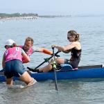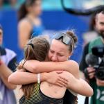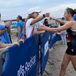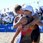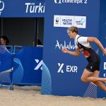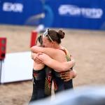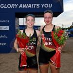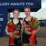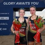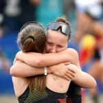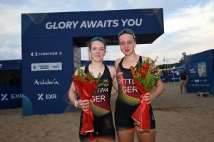 Im Finale gegen Marta Parades Fernandez und Carmen Jarabo Perez aus Spanien lag das deutsche Boot vom Start weg in Führung, aber die bissigen Spanierinnen blieben dran und hatten bei der Wende nur rund eine Sekunde Rückstand. Auf dem Rückweg setzten sich Mia und die erst 16-jährige Selma dann aber entscheidend ab. Der Strandlauf war für Tetiwa so nur noch eine Pflichtaufgabe. In 2:45,56 Minuten und mit fast fünf Sekunden vor Spanien holten sie souverän die Goldmedaillen, die ebenso wie bei den Junioren erst am Samstag verliehen werden.