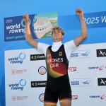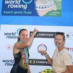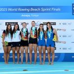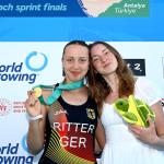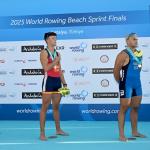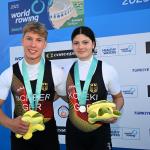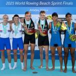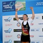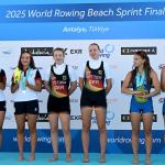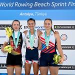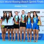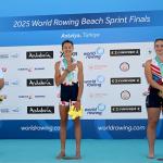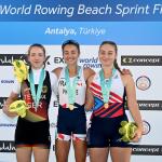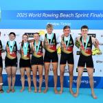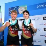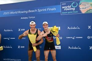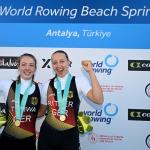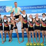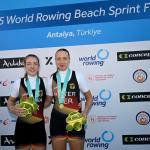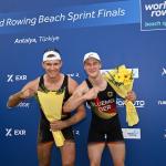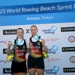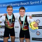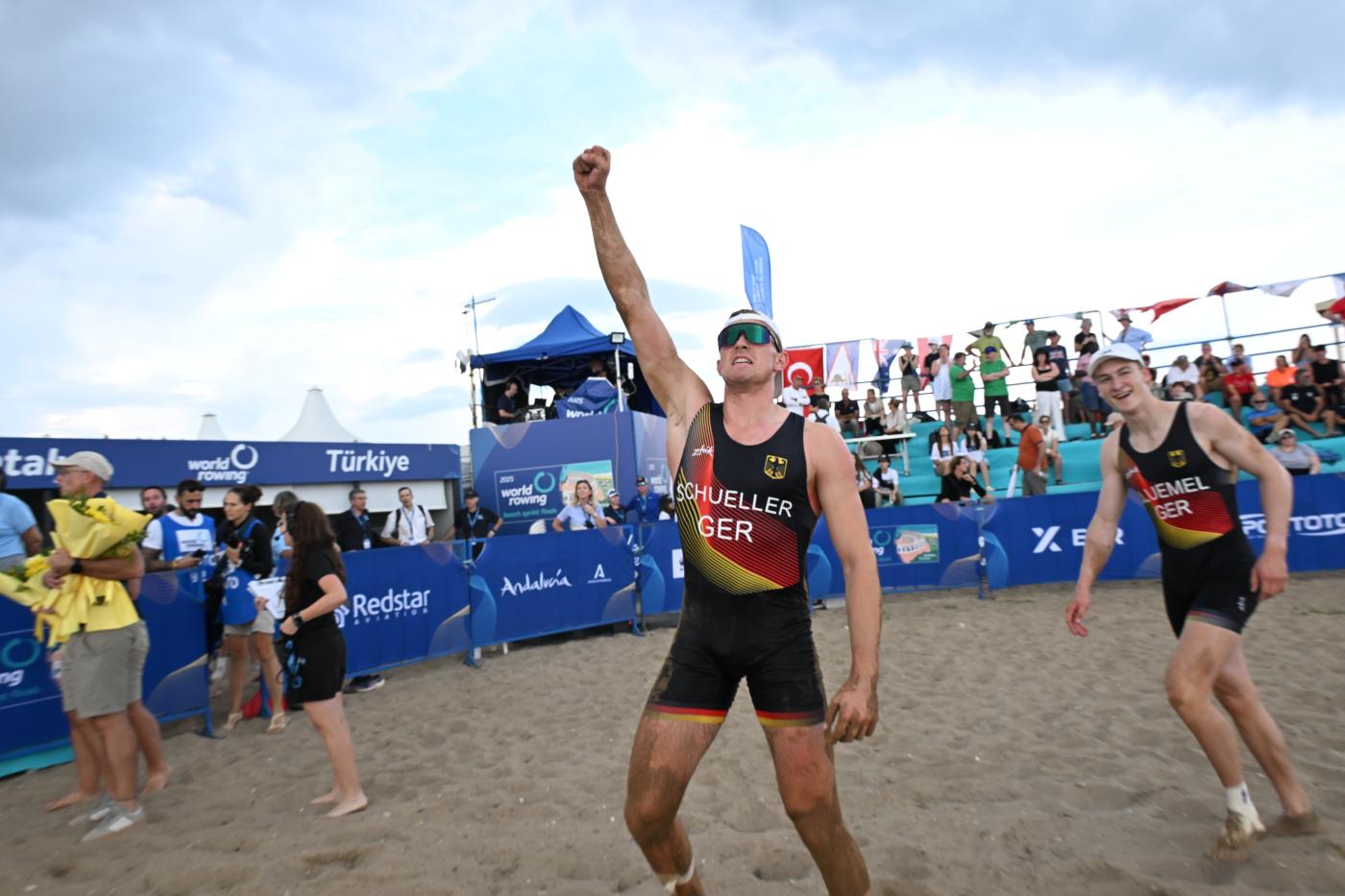Der Freitag stand bei der Beach-Sprint-Weltmeisterschaft in der Türkei ganz im Zeichen der Junioren. Für den Deutschen Ruderverband und sein Coastal-Nationalteam wurde es ein schlichtweg perfekter Tag. Beide U19-Doppelzweier wurden Weltmeister. Zuerst sicherten sich Julius Schüller (ARV zu Leipzig) und Julius Blümel (Berliner RC) nach drei gewonnenen Duellen die Goldmedaille, eine Stunde später holten Mia Tetiwa (RV Nürnberg) und Selma Ritter (Dresdener RC) ebenfalls den WM-Titel.