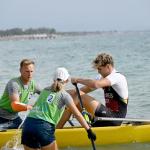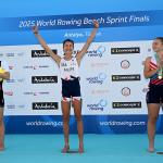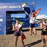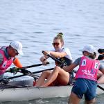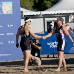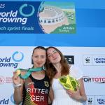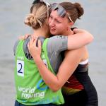 Nicht minder beeindruckend war die Teamleistung von Mia Tetiwa (RV Nürnberg) und Selma Ritter (Dresdener RC), die sich damit ebenfalls souverän den Weltmeister-Titel sicherten. Im Viertelfinale gab es nach einem etwas wackligen Start einen sicheren Sieg gegen die USA. Im Halbfinale ließ das deutsche Duo der Crew aus Italien keine Chance. Selbst ein kleines technisches Problem kurz vor der letzten Boje brachte Ritter und Tetiwa nicht entscheidend aus dem Rhythmus.