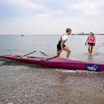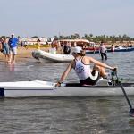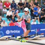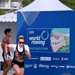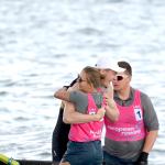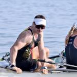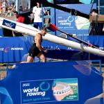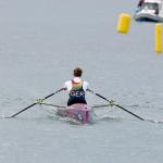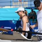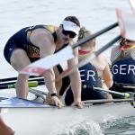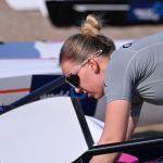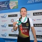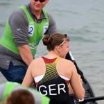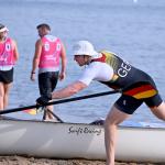 Auch Mia Tetiwa (RV Nürnberg) bestätigte ihre gute Form. Nach einem konzentrierten Start ließ sie Isabella Monahan (Irland) im Knockout-Rennen des Juniorinnen-Einers keine Chance. „Ganz souveräner Lauf – trotz Wellen hervorragend gemacht. Am Ende hat sie sogar noch Körner gespart für die Finalrunde im Doppelzweier gleich danach“, lobte Bretting. Gegnerin im Viertelfinale wird am Samstag die Chinesin Leli Li sein.