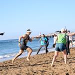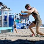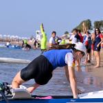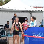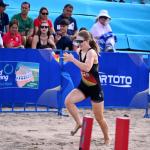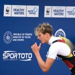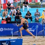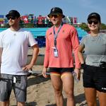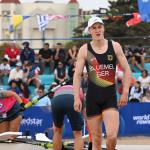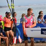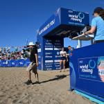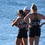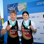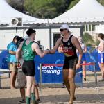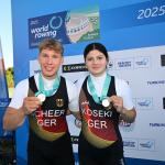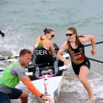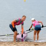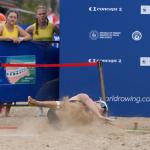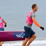 Am spannendsten machte es der U19-Mixed-Doppelzweier mit Miklas Scheer (Erster Kieler RC) und Anna Koseki (RV Wandsbek), gewann aber sein Achtelfinalduell gegen die Polen Borysewicz/Kusmider doch noch und steht ebenfalls im WM-Viertelfinale. Der Start verlief alles andere als ideal: Ein Sitzproblem kostete das Duo früh Sekunden, sodass Scheer und Koseki an der Wende-Boje rund vier Sekunden zurücklagen. Zudem musste Koseki das weitere Rennen ohne funktionierenden Rollsitz bestreiten. Aber davon ließen sich Beide nicht unterkriegen. Auf dem Rückweg drehte das deutsche Boot auf, fand einen guten Rhythmus und arbeitete sich konsequent heran. Im Strandlauf setzte Scheer schließlich den entscheidenden Punch und überholte den Polen Borysewicz auf den letzten Metern. Gegner im Viertelfinale ist die im Achtelfinale eigentlich unterlegene Schweiz, doch Ägypten bekam eine 10-Sekunden-Strafe wegen Frühstarts aufgebrummt und schied damit aus.