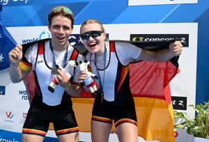 Nach ihren Medaillen im Einer ruderten Jasmina Bier und Paul Umbach (RG Hansa Hamburg und RC Nürtingen) auch im Finale des PR2 Mixed-Zweiers aufs Podium. Die Silbermedaille war umso wertvoller, weil sie das einzige Boot im Vierer-Feld waren, das sich nicht für die Paralympics in Paris qualifiziert hat. Schon beim Start reihten sich Bier und Umbach hinter Großbritannien ein, an dieser Rangfolge änderte sich im gesamten Rennen nichts mehr. Dritter wurden die Niederlande. „Jasmina und Paul können die internationale Saison mit vielen Erfolgserlebnissen beenden. Ich bedaure es sehr, dass der Behinderten-Sportverband meinem Bipartite-Antrag für die Beiden für Paris, der einen Start bei den Paralympics ermöglicht hätte, nicht stattgegeben hat“, sagte Cheftrainer Stallberg.