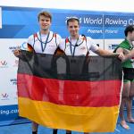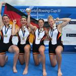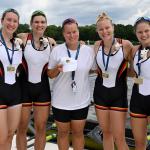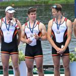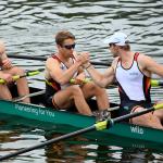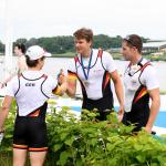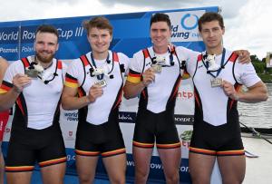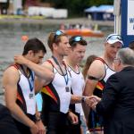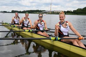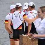 Mit der Bronzemedaille schaffte das neu aufgebaute Perspektivboot „Germany 2“ im Finale des Männer-Doppelvierers einen schönen Erfolg. Paul Berghoff, Alexander Finger, Felix Heinrich und Paul Krüger (SC Magdeburg, Berliner RC, RK Normannia Braunschweig und RC Favorite Hammonia) kamen nach einem erfrischenden, mutigen Rennen zusammen mit Sieger Polen und der zweitplatzierten Schweiz aufs Siegerpodest. „Es ist richtig krass, dass wir ins Finale kommen und dann auch noch eine Medaille holen“, sagte Paul Krüger. Nun freuen sich alle auf den Start und das Erlebnis in Henley. Enttäuschend verlief das Finale hingegen für „Germany 1“. Anton Finger, Max Appel, Tim Ole Naske und Moritz Wolff (Berliner RC, SC Magdeburg, RG Hansa Hamburg und Berliner RC) kamen von Beginn an nicht in Schwung und konnten als Fünfte nur Polen 2 hinter sich lassen.
