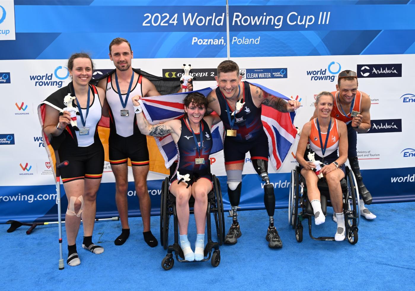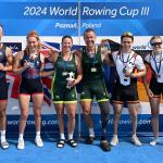 Der gesteuerte PR3 Mixed-Vierer ist noch nicht wieder in der Form von 2023. Kein Wunder, denn Poznan war der erste Wettkampf des Jahres, den der WM-Dritte absolvieren konnte. Wie im Testrennen kamen das Boot auf den vierten Platz. Großbritannien gewann vor den USA und Frankreich, das sich erneut vor Susanne Lackner, Valentin Luz, Marc Lembeck, Kathrin Marchand und Steuerfrau Inga Thöne (Mannheimer RV Amicitia, Frankfurter RG Germania, beide RTHC Bayer Leverkusen und Ulmer RC Donau) platzierte. „Sie waren noch nicht hundertprozentig auf dem Dampfer“, sagte Trainer Ralf Müller. „Wir wissen, woran wir zu arbeiten haben. Wichtig ist, dass die gesamte Mannschaft im Beruf jetzt in Freistellungsphasen geht, damit mehr Zeit für Training und Regeneration ist“, sagte Cheftrainer Stallberg.