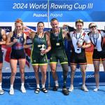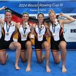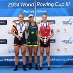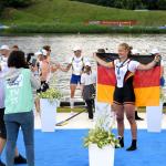 Die Idee, Juliane Faralisch (Frankfurter RG Germania) den zweiten deutschen Frauen-Einer anzuvertrauen, hat sich für Verband und Athletin gelohnt. Bei ihren drei Weltcup-Auftritten nach fünfjähriger Pause erreichte sie in Poznan zum zweiten Mal das A-Finale und schaffte mit Silber hinter Tara Rigney einen schönen Erfolg. Trotz ihrer Muskelprobleme war Faralisch lange Zeit die Einzige, die der Top-Drei-Athletin aus Australien halbwegs hinterher kam. Am Ende rettete sie den zweiten Rang gegen die Schweizerin Aurelia Janzen ins Ziel. „Ich bin happy, dass ich dieses Jahr so viele Rennen fahren durfte und dass ich das, was ich gelernt habe, heute auch umsetzen konnte“, sagte Faralisch. „Juliane ist genau nach Plan gefahren: Vorne nicht überdrehen, eine stabile Mitte, damit hinten noch was im Tank ist. Das ist komplett aufgegangen“, sagte Bundestrainer Alexander Schmidt.