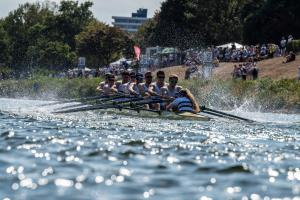 Der bisher ungeschlagene Münster-Achter traf im Finale wie schon am ersten Renntag auf das Buderus Sprintteam Mülheim. Diese warfen alles in die Waagschale und ließen die Münsteraner nicht davonfahren – Fotofinish! Nach der Versicherung durchs Zielgericht verkündete Moderator Jan Czichy: 3 Zehntelsekunden Vorsprung für das Team aus Münster, welches erleichtert die Arme in die Höhe riss.