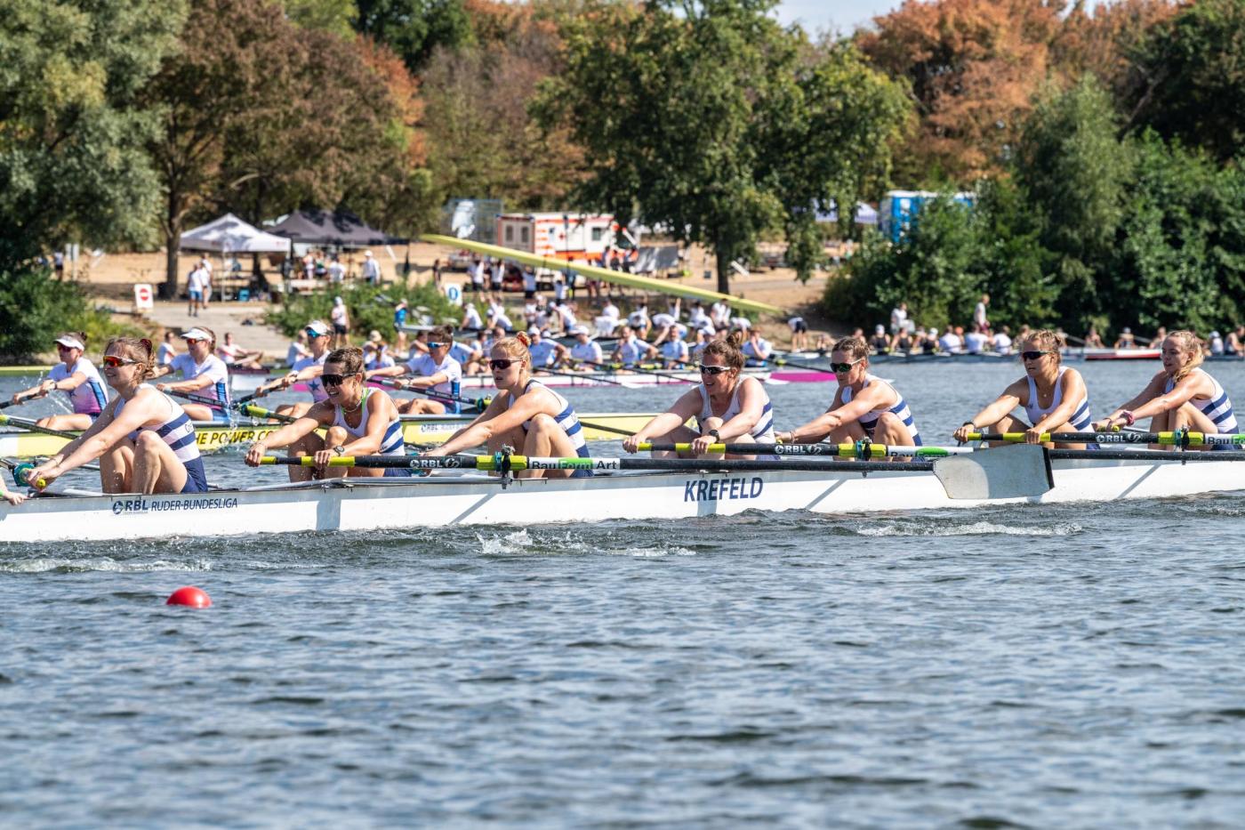 Genau 11 Jahre nach dem letzten Ruder-Bundesliga Renntag in der Niederrhein Arena in Krefeld, kehrte der Ligazirkus zurück auf den Elfrather See. Die Ruder-Bundesliga hat seitdem nichts an Spannung verloren. Auch der vierte und bereits vorletzte Renntag der Ruder-Bundesliga 2022 war ein voller Erfolg. Entgegen allen Wetterprognosen grüßte der Tag mit strahlendem Sonnenschein und lockte gemeinsam mit dem Crefelder Rudertag viele Zuschauer zu dem großen Ruder-Spektakel an den Elfrather See in Krefeld.
