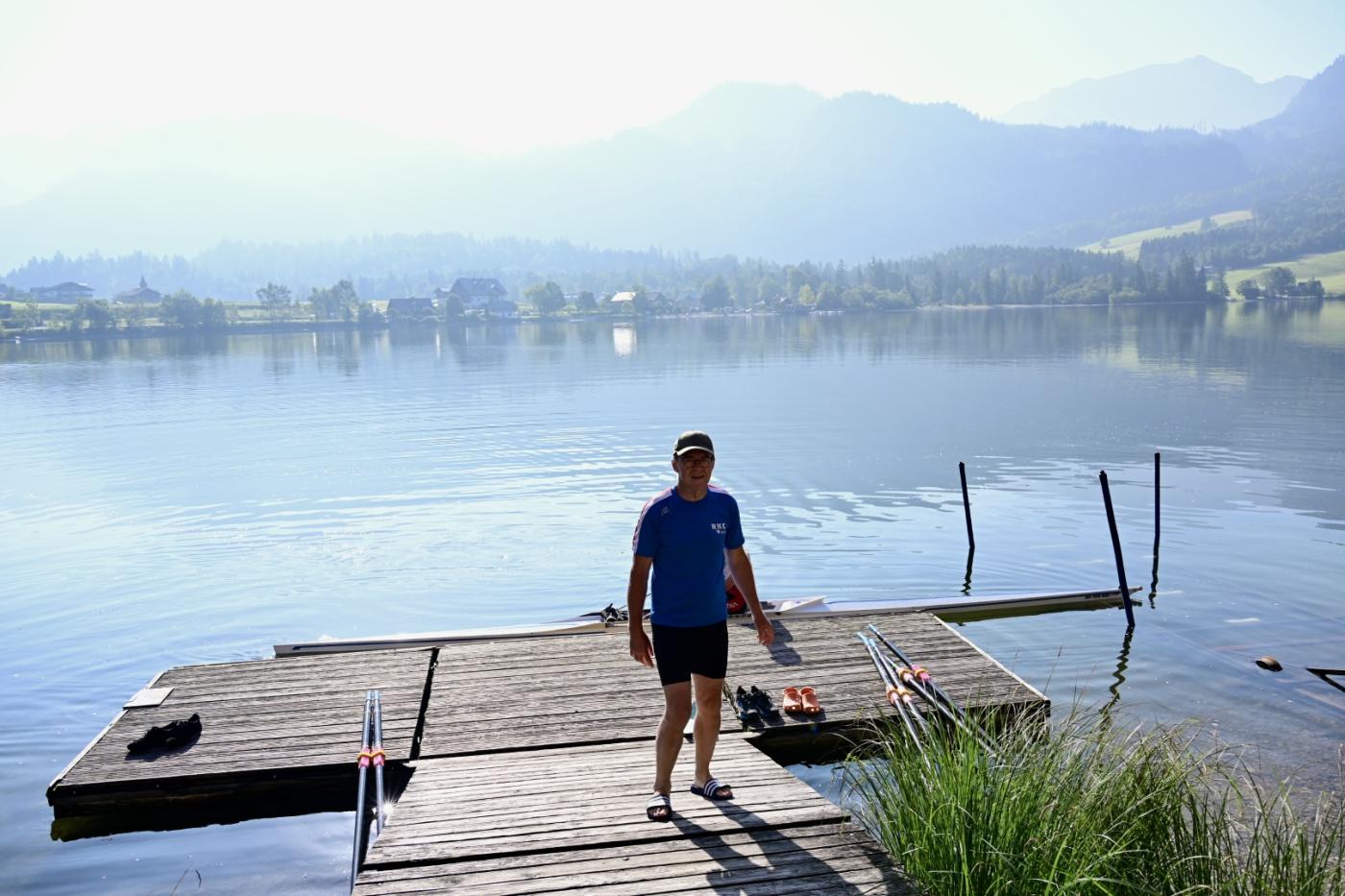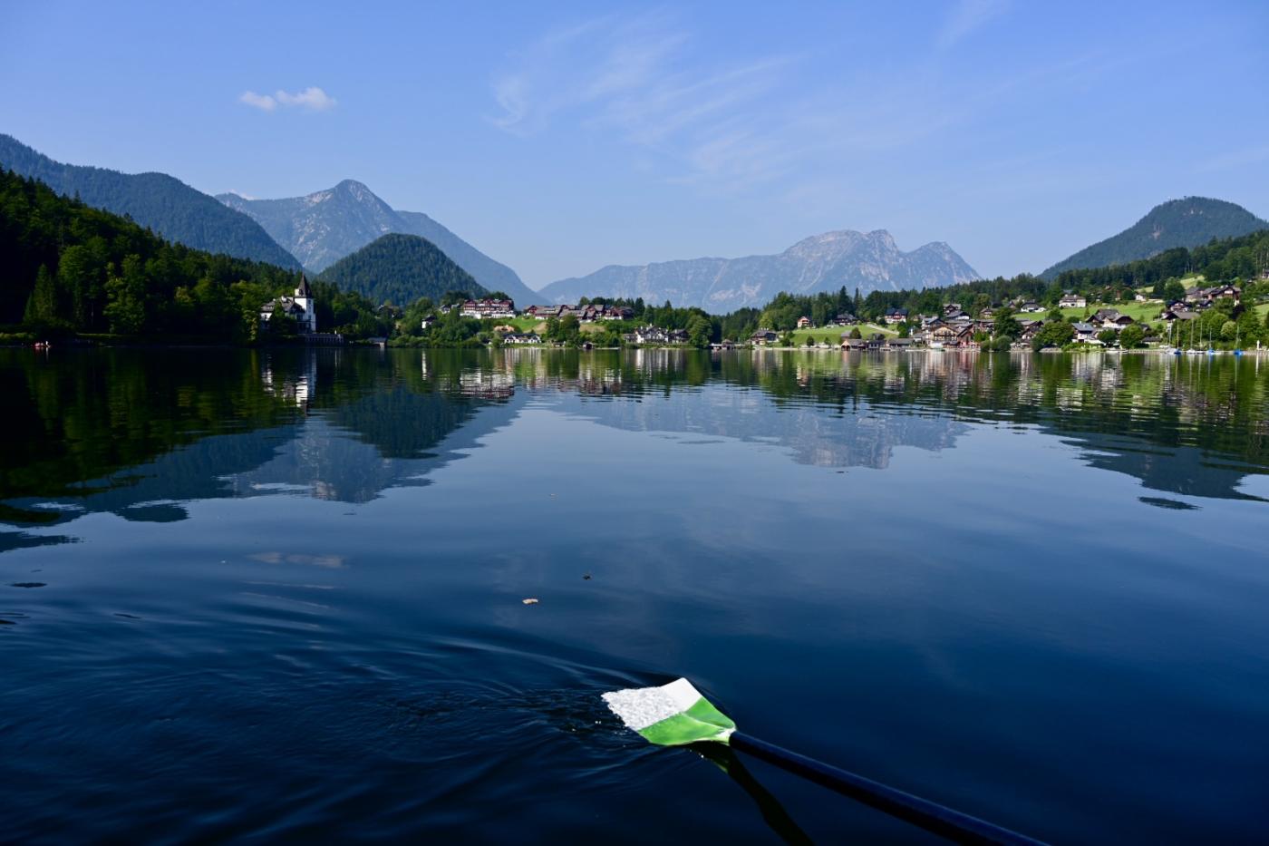 Stefan Pless hat ein Rudercamp organisiert und wieder einmal sein Elternhaus als Ausgangspunkt für eine harte, aber herzliche Trainingswoche zur Verfügung gestellt. Wir als Sportgruppe stellen uns der Herausforderung, die aus täglichen Übungseinheiten des beliebten Steiermark-Triathlon besteht: Rudern übern Grundelsee, besteigen der umliegenden Berggipfel, Zubereitung einheimischer Schmankerl, ein forderndes Programm. Zitat Katja: „Nichts für Weicheier hier.“