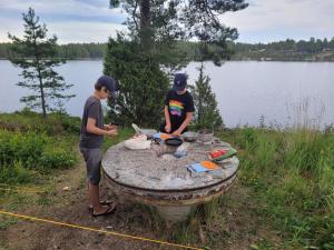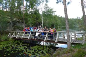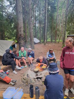 In Lennartsfors erwartet uns der Stammplatz für unser „Camp am See“. Das Wetter ist gut und wir wollen rudern! Daher geht es schon bald auf die erste Tagestour und eine mehrtägige Fahrt den Foxen hinauf. Alle genießen das Hängemattenlager auf der Insel nördlich von Töcksfors, das Kochen in Kleingruppen auf den Trangias oder auch das Stockbrot, welches bei einem richtigen Lagerfeuerabend natürlich nicht fehlen darf. Zurück im Camp in Lennartsfors wird das Land zu Fuß erkundet. Eine Wanderung im Nationalpark Tresticklan an der norwegischen Grenze gehört genauso dazu wie Ausflüge in den Elchpark, ins norwegische Halden oder Streifzüge durch den nahegelegenen Wald. Highlight des Landprogramms ist die Schnitzeljagd – Fabelwesen aus Astrid Lindgrens „Ronja Räubertochter“ verzaubern den Wald und die alte Schutzhütte und stellen zahlreiche Rätsel und Aufgaben, die es zu bewältigen gilt, bevor duftende Waffeln auf alle warten.