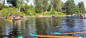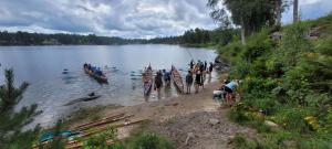 An einem sonnigen Sonntag geht’s wieder ins Boot. Doch nach einer schönen Rudertour auf dem Lelång endet unsere Wanderfahrt in Gustavsfors – auch wenn Menschen und Material auf lange Touren vorbereitet sind, macht uns an dieser Stelle das Wetter einen Strich durch die Rechnung - Sturm, Starkregen und Wellen über mehrere Tage hinweg. Doch die Laune bleibt gut. So stellen Kartenspiele, Pilze sammeln, Werwolfrunden, Bauworkshops in der Bootshalle, Draisine fahren und ein Besuch im Spaßbad hervorragende Alternativen dar. Damit alle den riesigen See Vänern bewundern können geht es am Freitag nach Abbau des Camps gemeinsam zum Aquädukt nach Haverud und weiter zum Strand nach Mellerud. Nach einem Abschlussabend am See und einer musikalisch vielfältigen Autofahrt geht es wieder auf die Fähre nach Deutschland. Und ganz nebenbei entsteht durch gemeinsames Dichten ein Liedtext zur Melodie von Peter Fox´ „Haus am See“. Mit dem Singen dieses Songs, lachenden Gesichtern und vielen neuen Freundschaften endet das Schwedencamp 2023.
