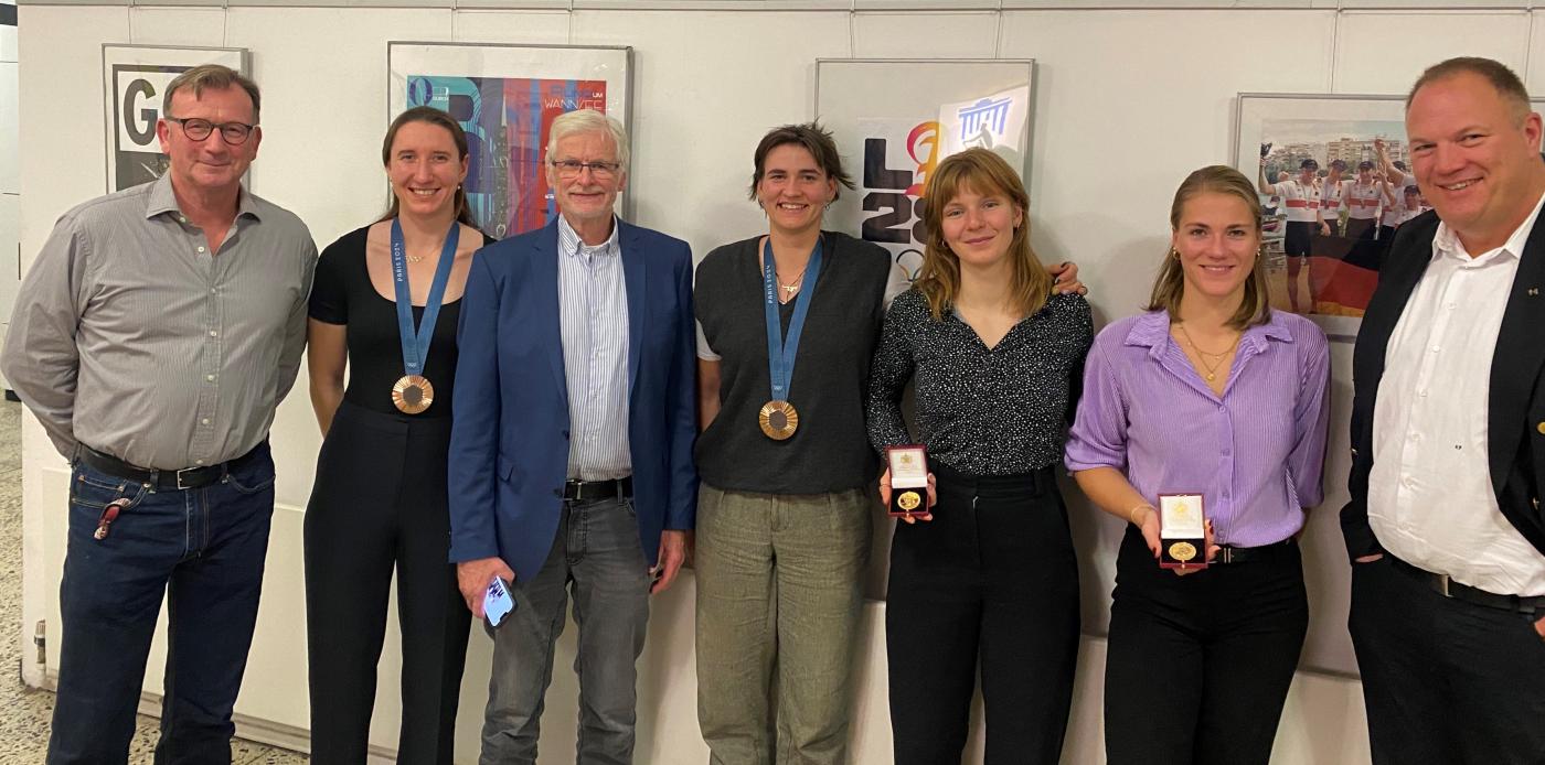 Vor dem Einstieg in den neuen Olympiazyklus hatte Bundesstützpunktleiter Dr. Frank-Roman Lauter die Berliner Athletinnen und ihre Trainer zu einer gemeinsamen Feier am Bundesstützpunkt eingeladen. Geehrte wurde bei dieser Gelegenheit das Frauenskull-Team und ihre Trainer Marcin Witkowski und Alexander Schmidt für die Erfolge im laufenden Jahr. Vertreter aus Sportpolitik und der Berliner Senatsverwaltung für Inneres und Sport nahmen ebenfalls an der Feier teil. Als Dank für den Gewinn der Bronze-Medaille im Doppelvierer bei den Olympische Spielen in Paris wurden Maren Völz (RC Potsdam), Tabea Schendekehl (RC Hansa von 1898 Dortmund), Pia Greiten (Osnabrücker RV), Leonie Menzel (RC Germania Düsseldorf) und Ersatzfrau Frauke Hundeling (Deutscher RV von 1884 Hannover) vom Mitglied des Sportausschusses des Deutschen Bundestages Herrn Dr. Herbert Wollmann personalisierte Erinnerungsbilder überreicht. Für den Gewinn der Stonor Challenge Trophy bei der Henley Royal Regatta (seit 1839) wurden Lisa Gutfleisch (Heidelberger RK) und Sarah Wibberenz (RC Havel Brandenburg) von Herrn Thomas Härtel, dem Präsidenten des Landessportbundes Berlin, geehrt. Für den Gewinn der Ladies Trophy bei der zweiten Traditionsregatta des Jahres, dem Holland Beker (seit 1886), wurde Juliane Faralisch (Frankfurter RG Germania) von Herrn Karsten Finger, Vorstandsvorsitzender des Olympiastützpunkt Berlin und Vizepräsident des Landessportbund Berlin geehrt. Das junge Frauenteam, ihre Trainer und die Mitarbeiter des Stützpunktes sehen den Olympischen Spielen in Los Angeles 2028 mit Freude und großen Erwartungen entgegen.