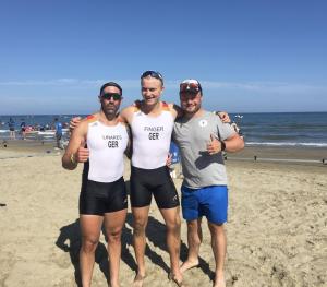 Überglücklich waren auch Eduardo Linares und Alex Finger (beide Berliner RC), die die zweite Medaille für das deutsche Team erzielten. Insgesamt 41 Teams hatten in dieser Bootsklasse gemeldet. Das Boot aus Berlin kam gut durch ihren Vorlauf und hatte im Finale seine volle Coastal Kompetenz im Doppelzweier unter Beweis gestellt. Zu einem regelrechten Krimi wurde dieses Rennen als die bereits weit in Führung liegenden US-Amerikaner im letzten Drittel des Rennens zunächst die falschen Bojen ansteuerten und damit dem schwedischen Team, Weltmeister aus 2022, die Führung überließen. Was bereits nach Gold für Schweden aussah, kippten die US-Amerikaner doch noch auf den allerletzten Metern beim Sprint am Strand.