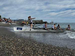 Die Wettkampfstrecke der World Rowing Coastal Beach Sprint Finals in Genua zeigte sich pünktlich zum ersten KO-Runden-Tag deutlich ruderbarer. Der von der Landseite kommende Wind sorgte dafür, dass die Wellen keine kritische Höhe erlangten. Somit war das Starten und Anlanden zwar einfacher. Auf der Strecke selbst galt es aber die Bojen zu beherrschen und die Boote auf dem richtigen Kurs zu halten.