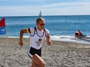 Den Anfang und das Highlight des Tages markierte Ben Henke (RC Potsdam) im CJM1x. Im Time-Trial unterliefen ihm noch einige Fehler, weshalb es im Time-Trial „nur“ für den glücklichen 16. Platz reichte. Das bedeutete auch, dass es im Knock-Out nun gegen den Time-Trial-Sieger aus Tschechien ging. Dass Henke mehr drauf hat, als er im Time-Trial zeigen konnte war dem DRV-Team vor Ort klar. Die Aufgabe war allerdings nicht ohne. Doch Henke ließ sich davon nicht verunsichern und lieferte von Beginn an eine starke Vorstellung ab, führte das Rennen früh an und baute die Führung weiter aus. Da ihm bis zum Schluss keine Fehler unterliefen, brachte er den Sieg sicher ins Ziel und machte damit den Einzug für das Viertelfinale perfekt. Nachdem er sich dort auch vom Starter aus Neuseeland nicht aus dem Konzept bringen ließ ging es im Halbfinale nun um den Einzug ins Finale. Im Halbfinale galt es aber den amtierenden Junioren-Weltmeister im Beach Sprint zu schlagen, wollte man ins Rennen um die Goldmedaille einziehen. Mit ordentlich Selbstvertrauen aus den vorherigen Rennen, ging er mutig ins Halbfinale. Ein enges Rennen bis zum Schluss. Mit etwa einer Bootslänge Vorsprung kam er wieder zurück auf den Strand. Der Ausstieg gelang deutlich besser als beim Vertreter der Gastgebernation und so ging es mit ordentlich Vorsprung in den Schlusslauf zum Zielbuzzer. Damit war der Finaleinzug perfekt! Seit dem Viertelfinale waren erst rund 45 Minuten vergangen und schon stand bereits das dritte Rennen an. Auch das ist eine Besonderheit beim Beach Sprint – die aufeinanderfolgenden Finalrunden. Im Finale wartete der Junior aus China auf Ben Henke. Henke lieferte ein solides Rennen ab, machte keine Fehler, kurz nach der Streckenhälfte wurde allerdings klar, dass sein Konkurrent heute einfach besser war und kontinuierlich den Vorsprung ausbaute. Fehler passierten keinem von beiden bis ins Ziel und so blieb am Ende nur eins: dem Sieger aus China zu gratulieren und sich über die stark erruderte Silbermedaille im CJM1x zu freuen! Die erste Medaille in dieser Bootsklasse für den DRV!