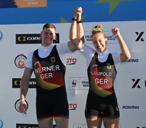 Werner/Leupold krönten einen kompletten Finaltag: Am Morgen ging es bereits gegen Gastgeber Türkei um den Einzug ins Viertelfinale. Trotz lautstarker Unterstützung von den Zuschauerrängen für die Gastgeber, ließ Team Germany nix anbrennen und zog ungefährdet ins Viertelfinale ein. Dort machte man direkt weiter mit einem klaren Sieg gegen die Niederlande und einem souveränen Halbfinalerfolg über Österreich zündete das Duo im Endlauf erneut einen schnellen Start, blieb technisch sauber und hielt den Druck hoch. Spannung pur für alle Zuschauer. Die Boote schenkten sich nix. Nach der Wende gab es dann den besseren Ausgang für Portugal. Aber: Silber ist der verdiente Lohn einer starken Serie und ein starkes Signal in Richtung WM.