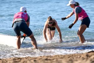 Julia Tertünte bestätigte im Coastal Frauen‑Einer ihren Status: Zweite im Time Trial in 2:46,56, nur 15 Hundertstel hinter Weltmeisterin und der späteren Europameisterin Magdalena Lobnig, danach ein kontrolliertes Achtelfinale in 2:51,18. Im Viertelfinale dann das Drama: knapp in Führung, stürzte sie beim Ausstieg in die Brandung, tauchte in den Wellen ab und verlor den entscheidenden Vorsprung – bitter, weil der Auftritt bis dahin nahezu makellos war. Besonders ärgerlich: beim Ausstieg hatte Julia bislang nur selten Probleme.